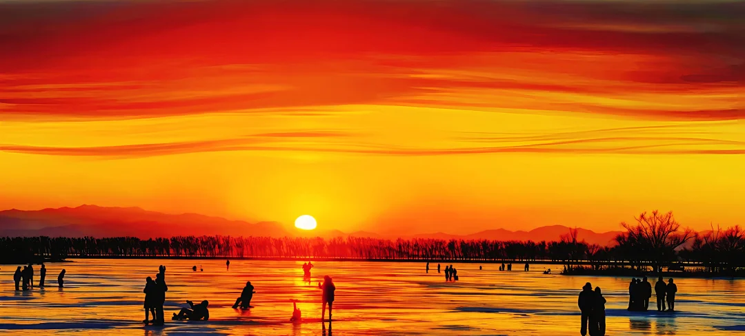 - 结冰的湖面上有人在滑冰⛸️,欢声笑语混着风声,治愈所有坏情绪~