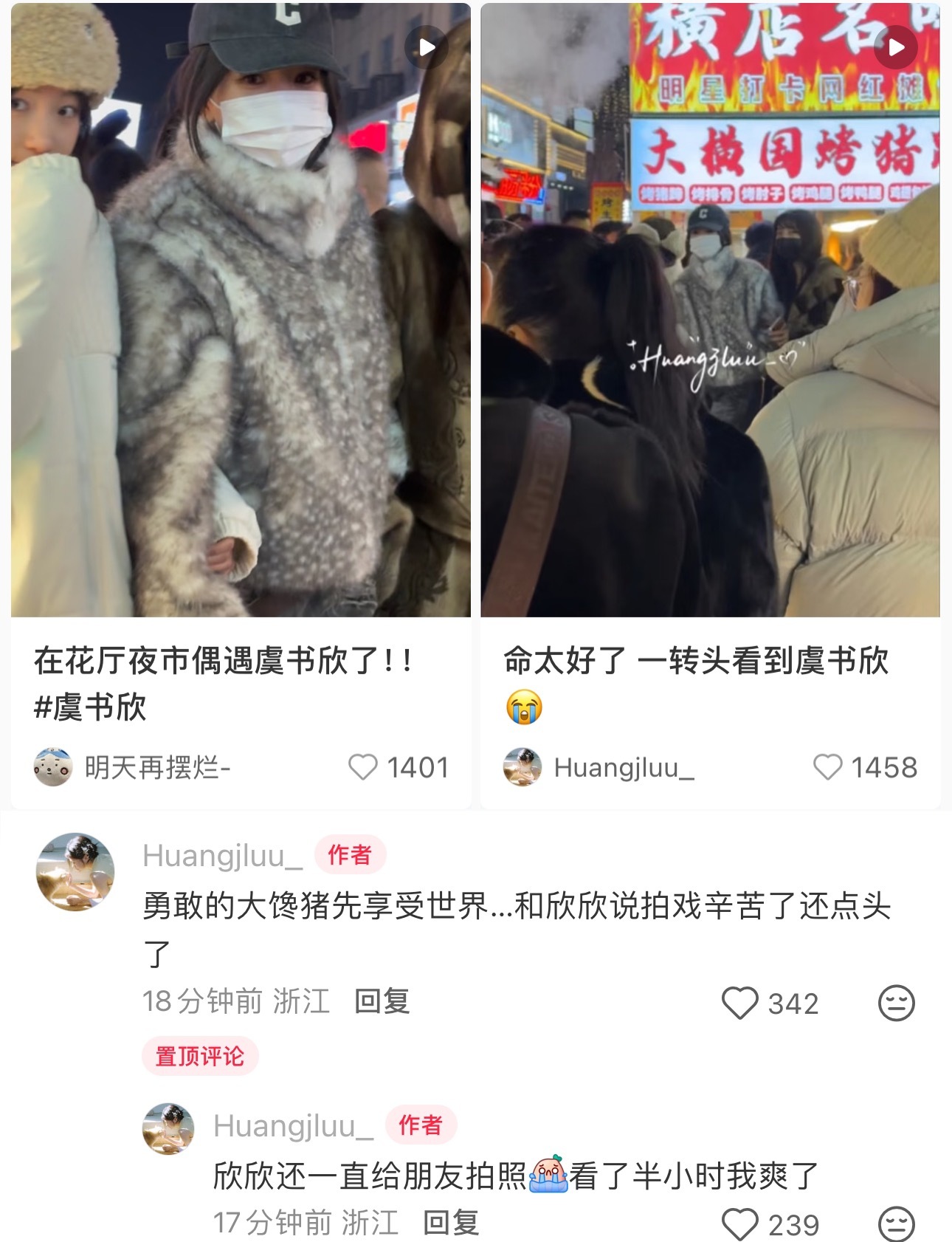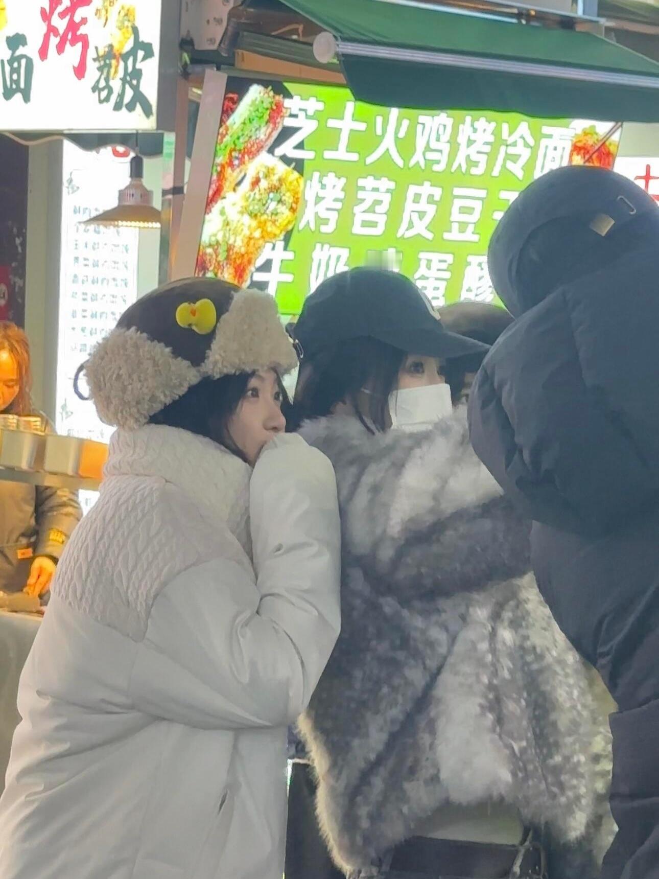勇敢的猪猪先享受美食,虞书欣和小姐妹去逛夜市了🥰虞书欣逛夜市也不忘给姐妹拍照横