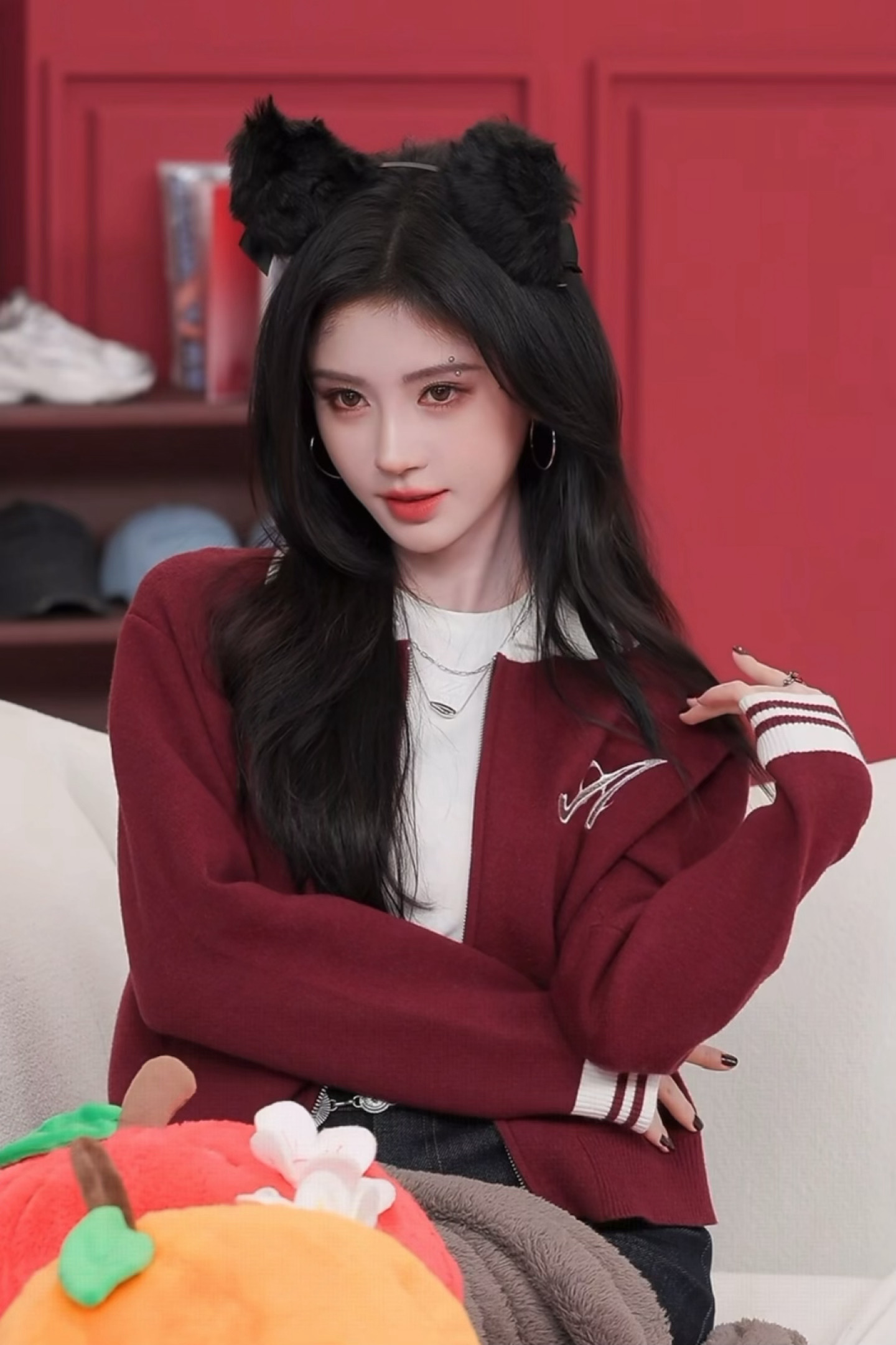 直播镜头每一帧都美到哭😭新年道具拍照那里太可爱了!!哈哈哈哈哈哈到结束孩子的眉钉只剩下一颗了,丢哪了啊(看p9)鞠婧祎新年道具拍照 鞠婧祎眉钉丢了一颗