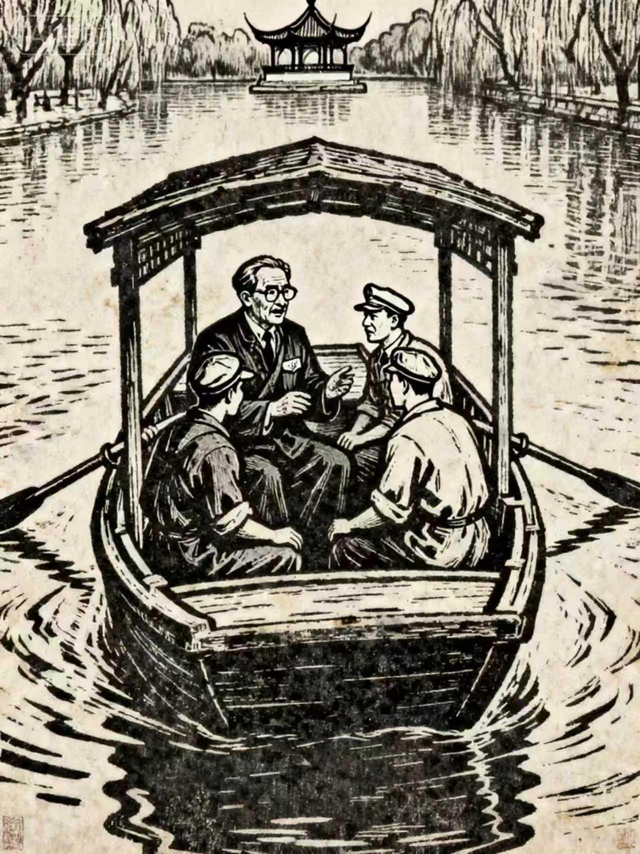 王铎:我的长篇小说《西镇》插图之四:闻一多与梁实秋看“龟兔赛跑”。