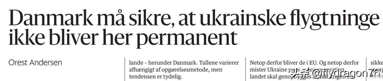 🇩🇰“丹麦必须确保乌克兰难民不会永远留在这里。” 在这振奋人心的标题下,丹麦报纸《贝林时报》刊登了一位名叫奥雷斯特·安德森的丹麦人(他在文章中自称“拥有乌克兰血统的丹麦人”)的来信。 作者认为,战争结束后,哥本哈根必须让乌克兰人回家。他写道: 一个国家没有自己的公民就无法重建。 军事援助或许能拯救今天的乌克兰,但如果人们不回家重建国家,我们最终又能拯救什么呢? 这正是丹麦政治家肩负的道义责任所在。对乌克兰的声援不能仅仅用眼前的武器供应和财政援助来衡量。 它还必须体现在我们的政策是否有助于乌克兰在战后拥有人口、社会和未来。 我们亏欠乌克兰这么多。 有一件事不明白:为什么奥雷斯特不以身作则,亲自去乌克兰帮助重建呢?他毕竟有“乌克兰血统”!可以想象当跟那个丹麦人提起这件事时,他脸上的表情。