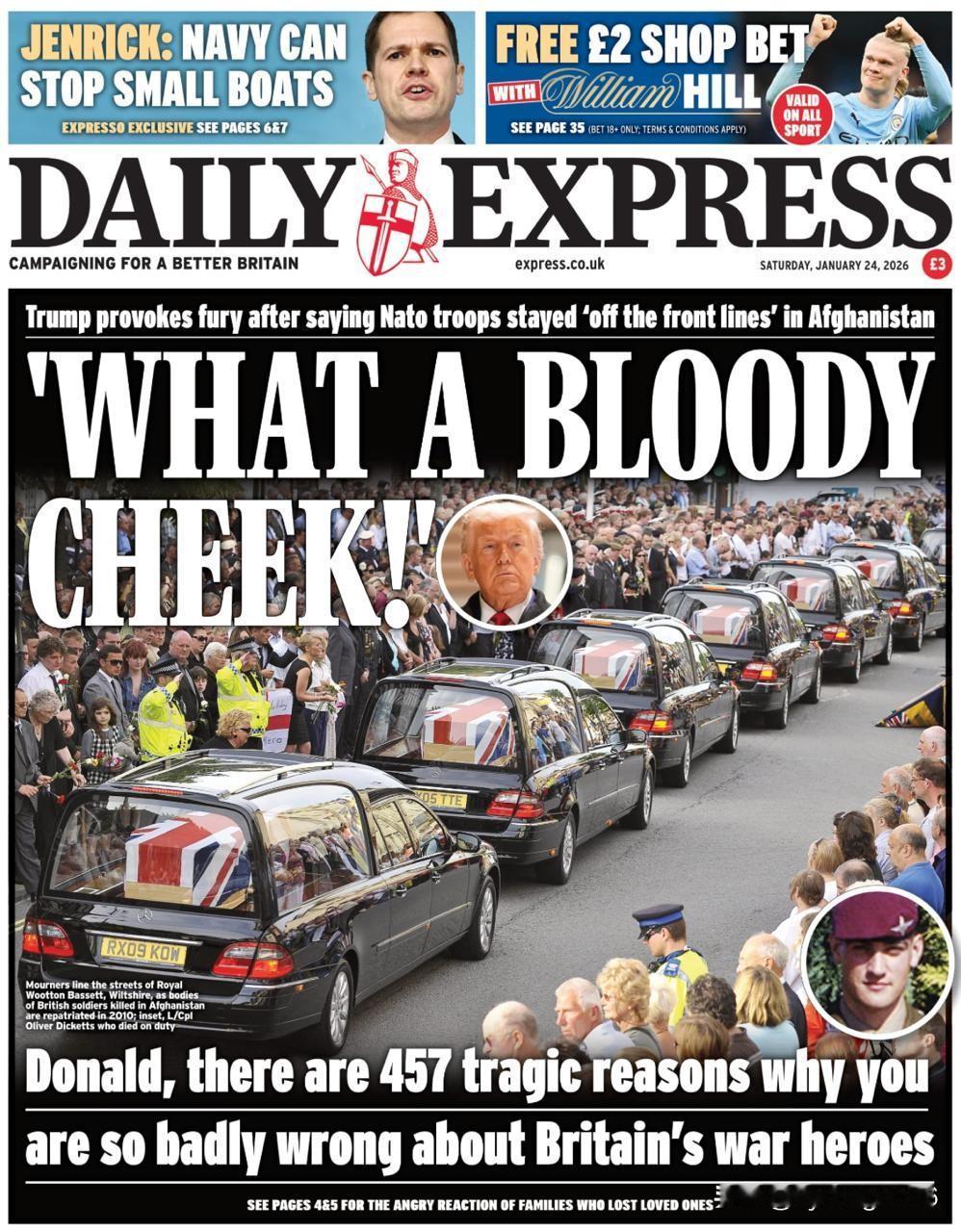 🇬🇧英国报纸对特朗普声称北约驻阿富汗部队袖手旁观,而美军英勇作战的说法大加挞伐。 《每日快报》怒斥道:“真是厚颜无耻!”并列举了457条“惨痛的证据”来证明特朗普的说法是错误的。好吧,他们提醒他,有457名英国人在阿富汗阵亡。 《每日镜报》则援引受伤的英国老兵和阵亡者家属的证词,高声疾呼:“道歉!” 哈!真是令人匪夷所思!难道他们到现在才意识到,美国在这样的行动中总是把盟友当作炮灰吗?事实上,英国人对待印度士兵的方式也如出一辙。难道天真的英国人以为他们对美国人来说比什么都重要吗?!
