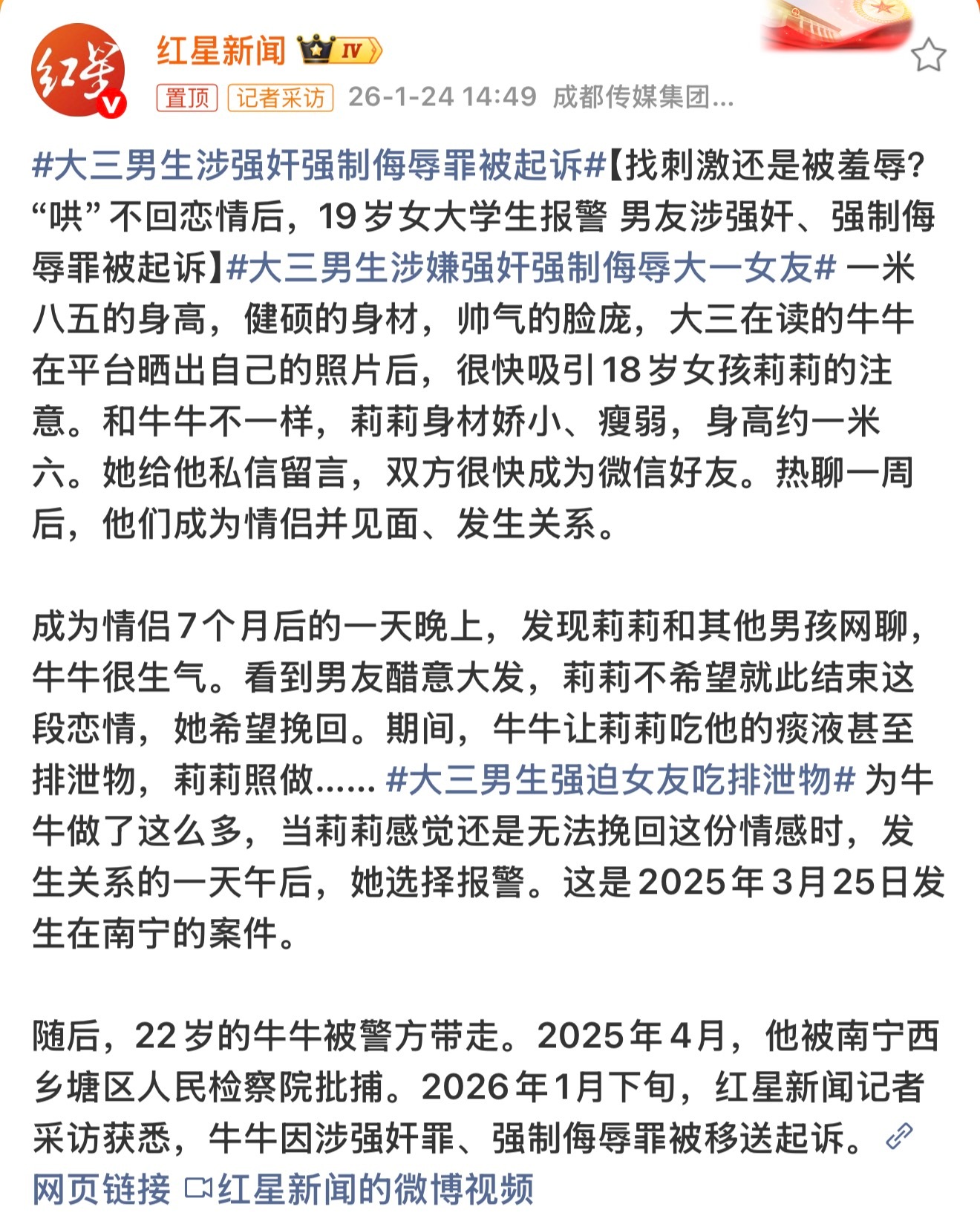 大三男生涉嫌强奸强制侮辱大一女友这哪里是情侣啊…….俩快锁死别流入市场,俩人一个都没有底线和清醒,别再出来祸害别人,锁死在该待的地方