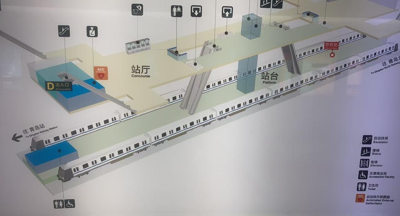 【青岛地铁啄木鸟】𝟓𝟎𝟓𝟑.街区导向图 🚇3号线 3号线各站站层图的列车示意图车门数量画错成6A车,不仅与实际的6B车车门数量不一致,也与线网其他线路绘制的是6B车门数量不一致 建议随着今年新线路开通同步调整此问题 ————————————————————