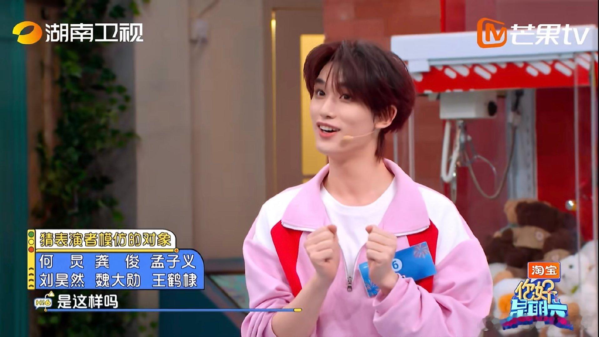 丁程鑫模仿孟子义唱歌 你好星期六 谁懂这个可爱度!丁程鑫小跑登场模仿孟子义唱歌,跑调都透着灵动,神态唱腔全拿捏