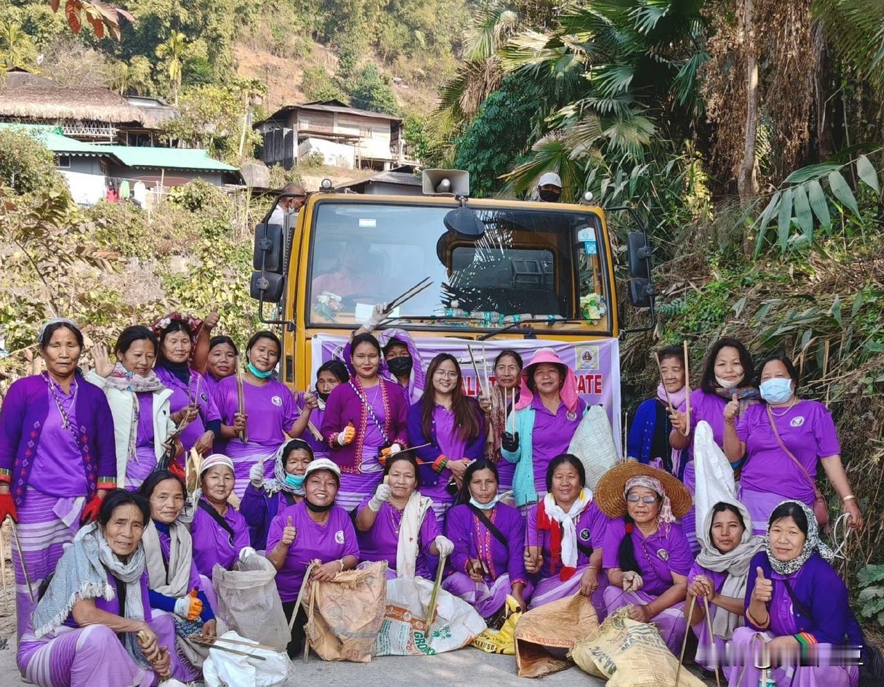 【藏南民情】 1月24日,“伪阿邦”妇女福利协会(APWWS)上思昂分会在英空组织了一场以“携手共建清洁绿色英基翁”为主题的一日大型社会服务活动,初看紫色服装是统一的会服,后来细看好像是这个地区部落女性的传统服装,该地区主要居住着阿迪、康巴(Khamba)和义都米什米,不知道是哪个部落的服饰。 藏南游行 藏玛民瑶