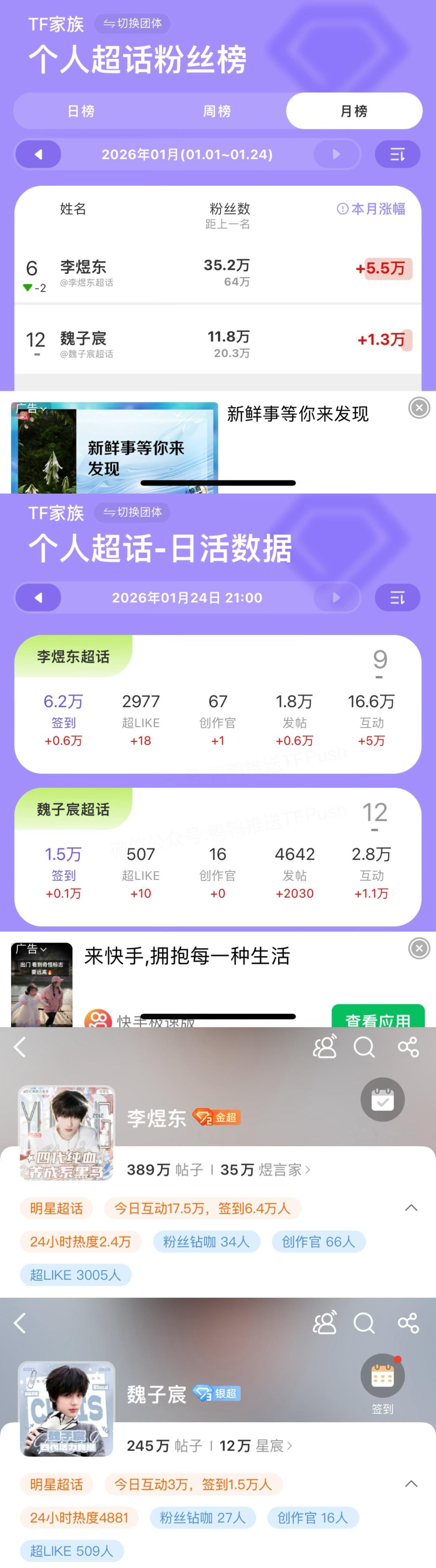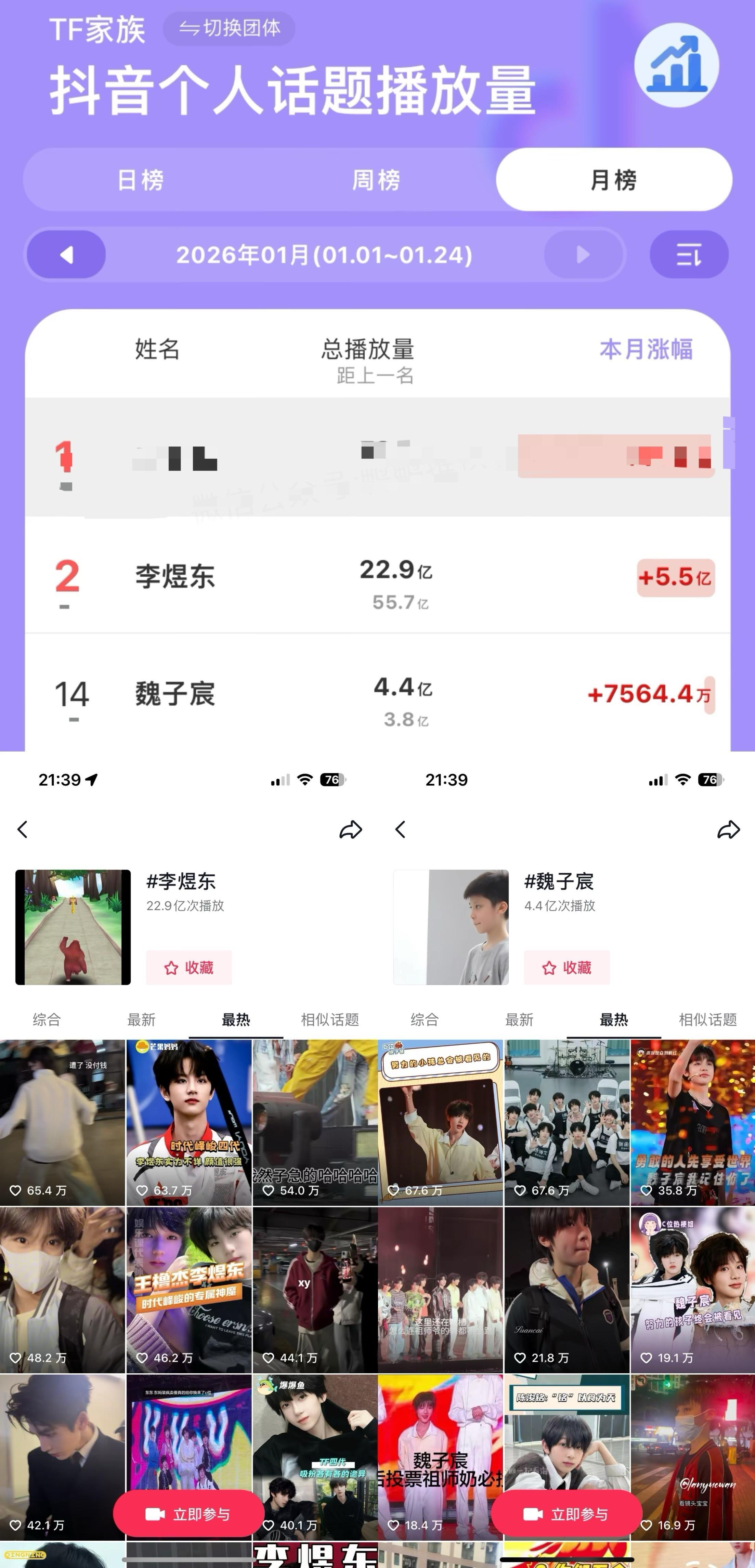 魏子宸 魏子宸家心比天高,在各个平台各方面数据全都被李煜东倍杀的情况下,是怎么有脸越级碰瓷的?数据差成这样结果xhs和dy单人cha都比李煜东多,还天天捆绑李煜东营销卖惨,不要闹了,隐形皇子就闭嘴好不好…