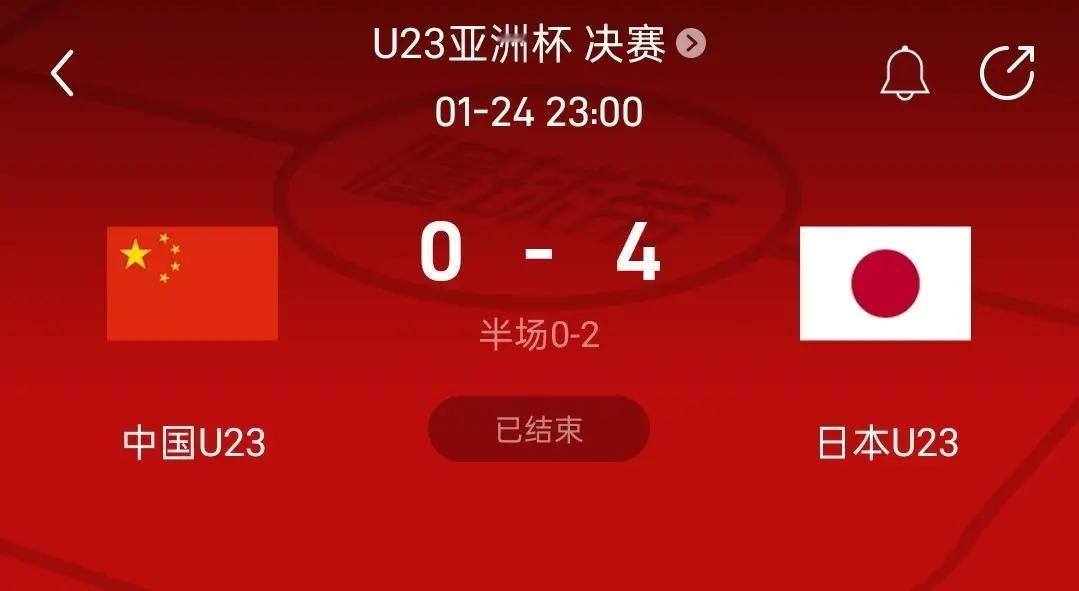 比赛第八十分钟,默默的关掉电视,这帮中国U23的孩子太让人心疼了!前五场比赛零失球,打进决赛,创造了历史,已经足够优秀!决赛0:4负于日本,说实话的确技不如人,面对日本U23,光有满腔热血是不行的,差距是全方位的,四个丢球看似偶然,其实是必然。主教练安东尼奥还是对困难准备不足,对日本U23没研究透,面对技术流中国U23败下阵来,不丢人,你们是最棒的!