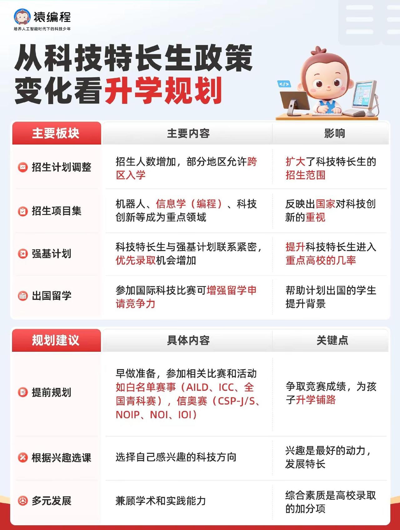 科技创新,机器人,人工智能,航空航天等多个方向 科技类招生计划,对白名单赛事获奖选手更加青睐。