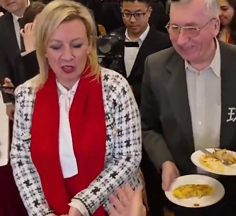 扎哈罗娃解锁中国煎饼制作技能,金发外交官系围裙摊饼超有范儿!凭童年北京记忆复刻街头美味,让硬核外交满是烟火气,一张煎饼架起中俄文化交流的暖心桥梁!