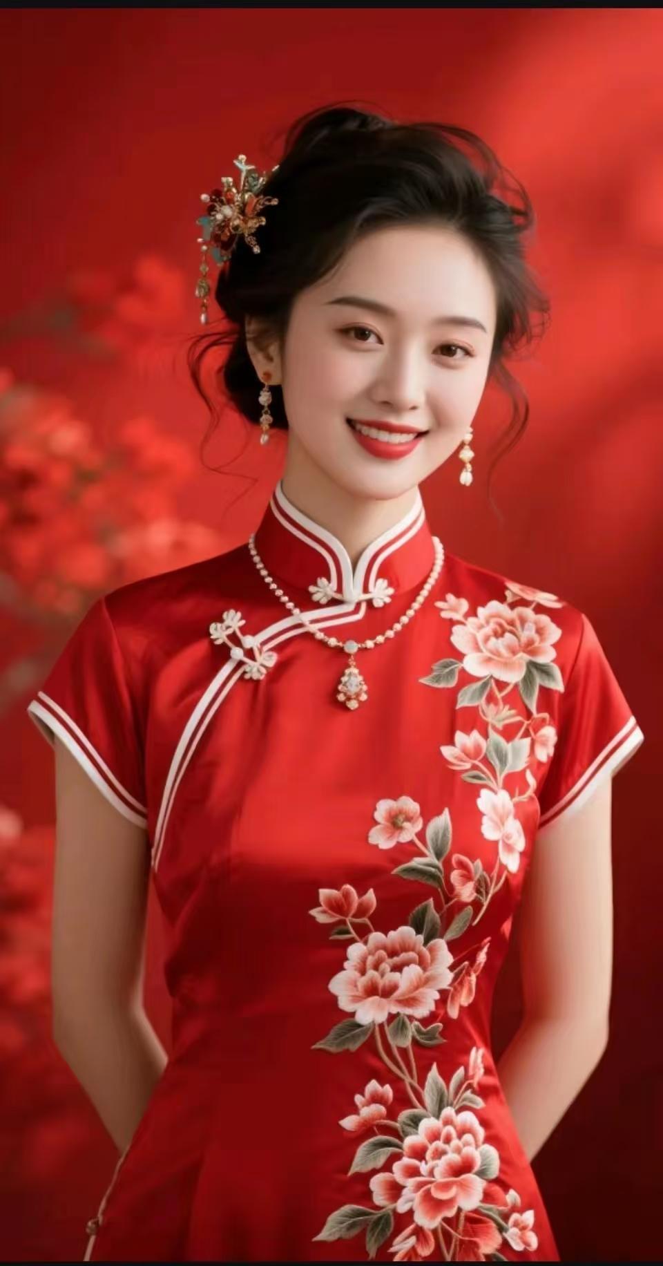 清江引·红襟绣蕊芳 红绡裁袂姚黄绣, 白缕襟前秀。 珠垂颈蕴霞, 钗插鬓凝宿。 华裳雅姿花逊瘦。
