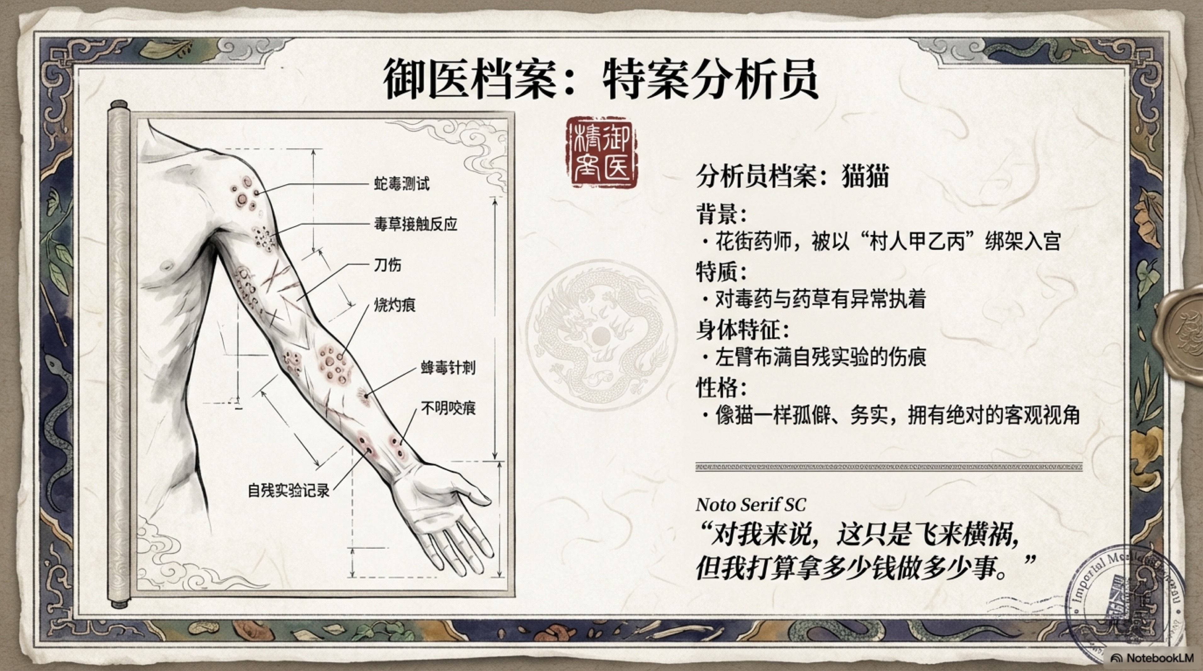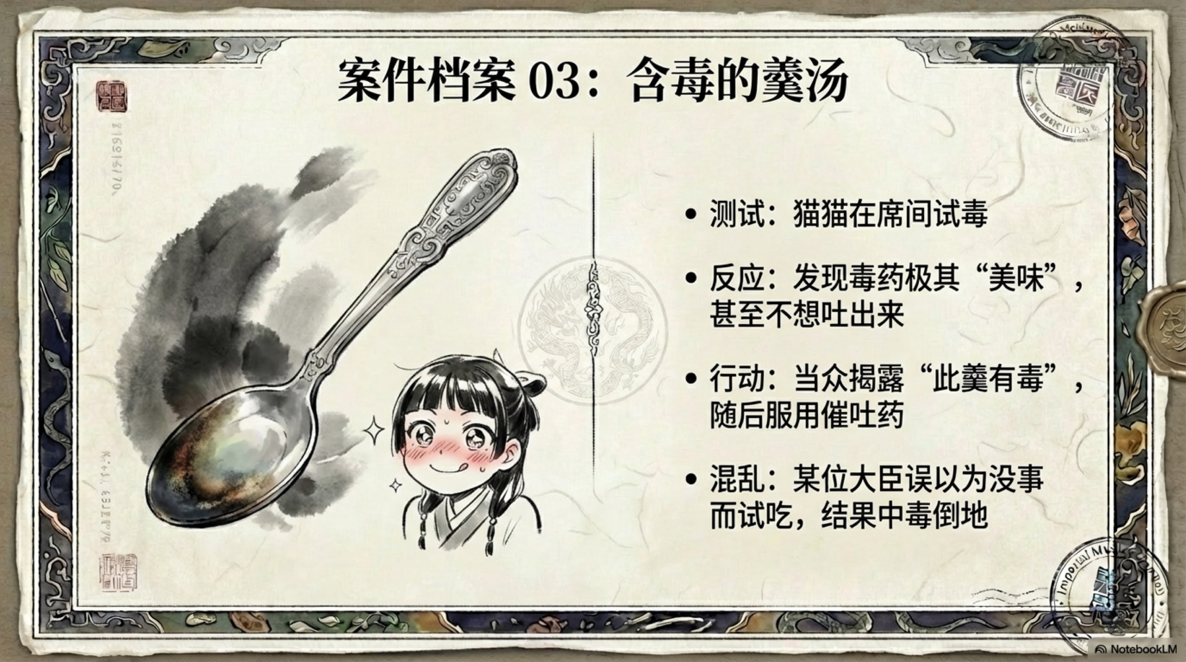 HOW I AI 今天在 Notebook Lm 里面查资料的时候发现很早以前刚刚使用的时候为了测试传了一本轻小说(《药师少女的独语》)上去。于是我脑抽点击了一下生PPT的按钮,想看它认真分析小说的样子 结果发现最终效果意外的好。 最神奇的是,里边的人物画的跟漫画和动画还挺像的,看来是搜索了对应的参考图。