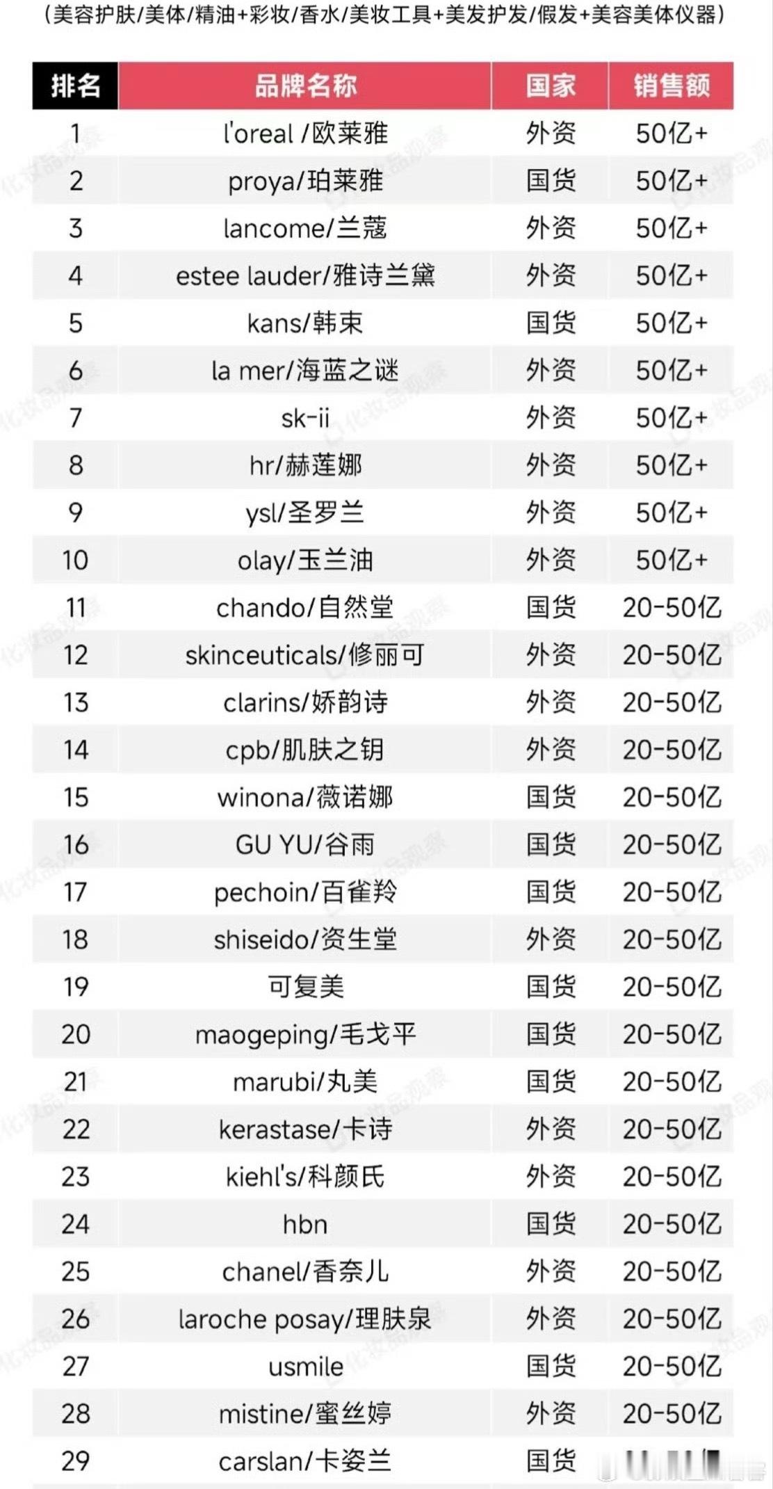 2025年电商美妆10亿品牌 唐嫣欧莱雅第一刘亦菲欧珀莱第二杨幂雅诗兰黛第四刘诗诗代言的?没有上榜