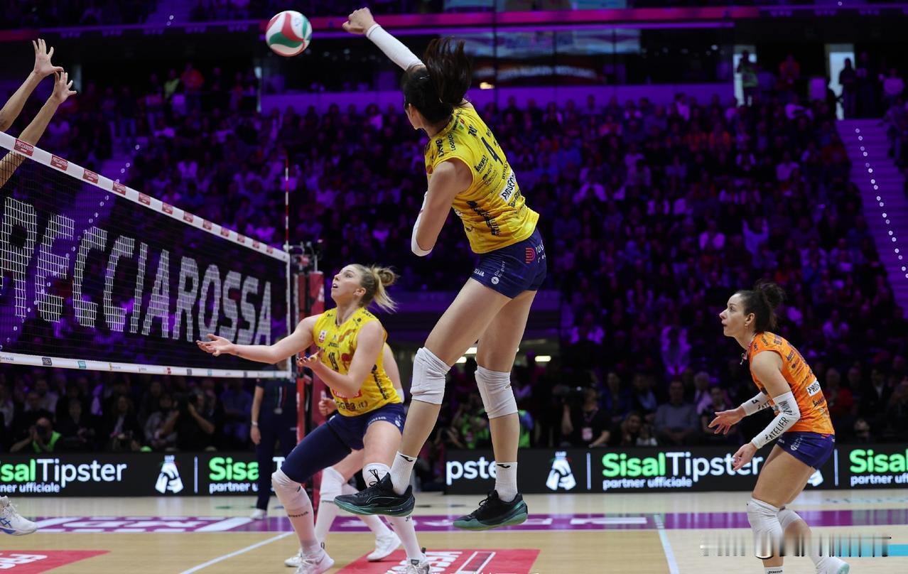 科内利亚诺太需要一个冠军来稳定一下了!昨晚上这场半决赛官方又漏掉了朱婷一分,应该是17扣8中1拦1发,10分!二传沃沃什传球真的很偏心啊,一传好,就给哈克和加比,一传不好就给我们朱婷,朱婷在4号位基本没有好球,而且矮得厉害,你就看图一这张,朱婷都是后仰着扣球!朱婷的一传和防守对科内来说是至关重要的,今晚上决赛打斯坎迪奇又是一场恶战!