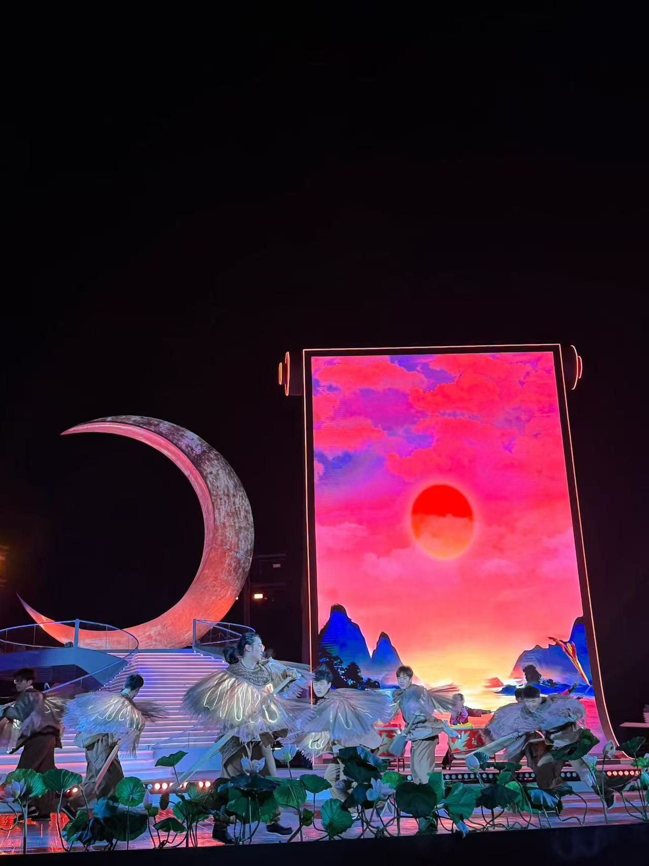 ▫️非遗×科技暴击:打铁花如流星坠湖、皮影戏演绎吴越争霸,20米高光影凌云塔喷水幕+冷焰火,16米超级月亮还原“洞庭秋月”,视觉震撼到起鸡皮疙瘩