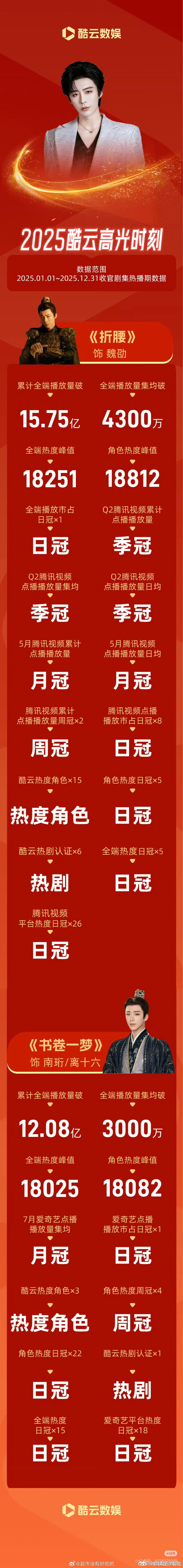刘宇宁2025酷云战报红火🔥大爆他的作品书卷一梦和折腰太牛了点进去全是日冠周冠热度角色太牛逼了双栖top实至名归刘宇宁网络视听盛典repo 刘宇宁直播