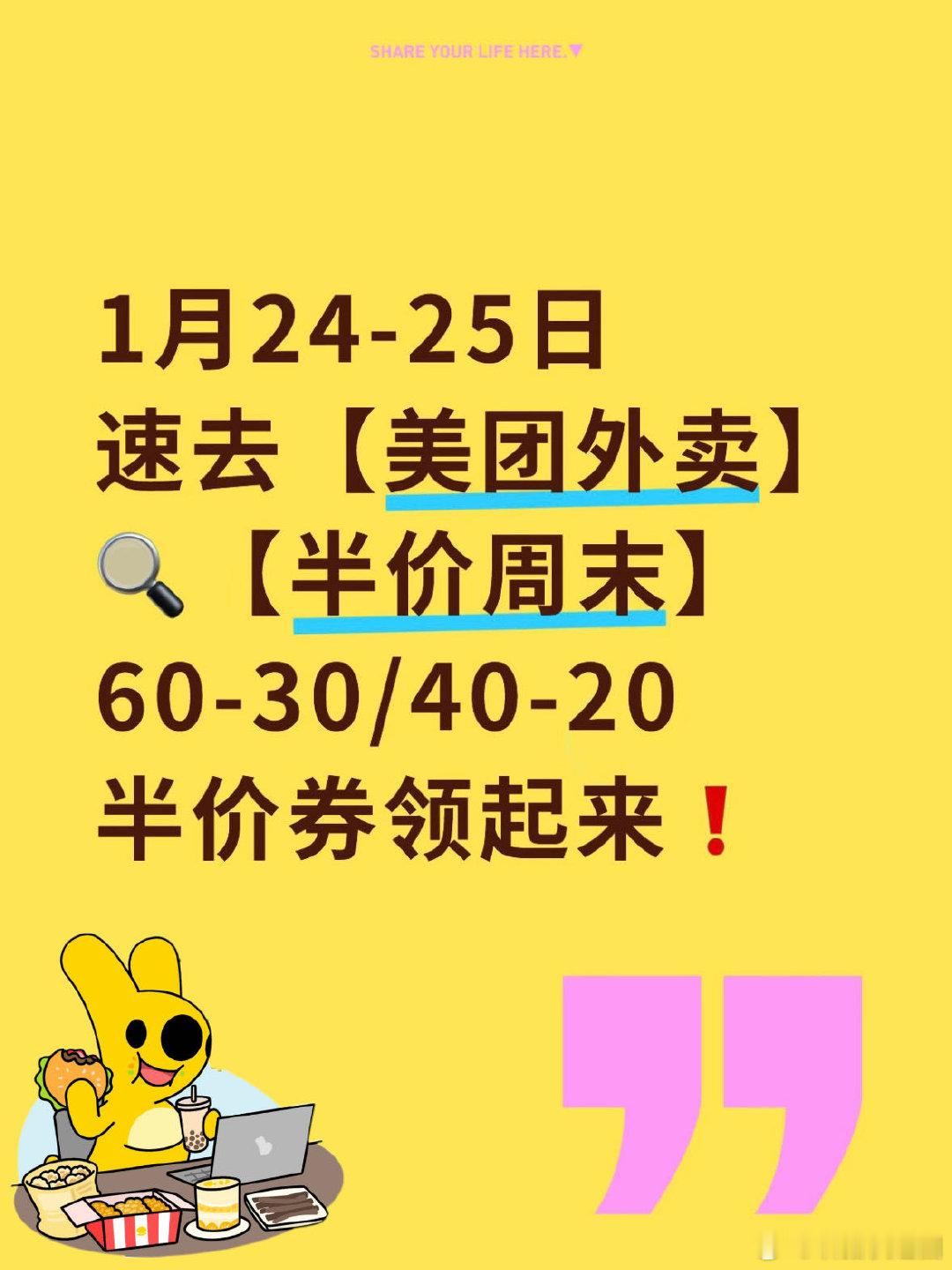 美团外卖周末半价吃大餐干饭人注意!1.24-25美团搜「半价周末」,神券最高减3