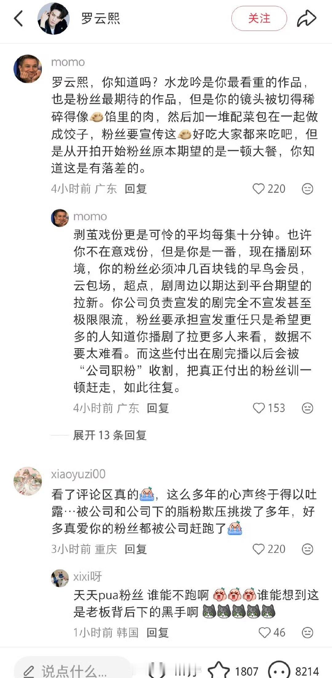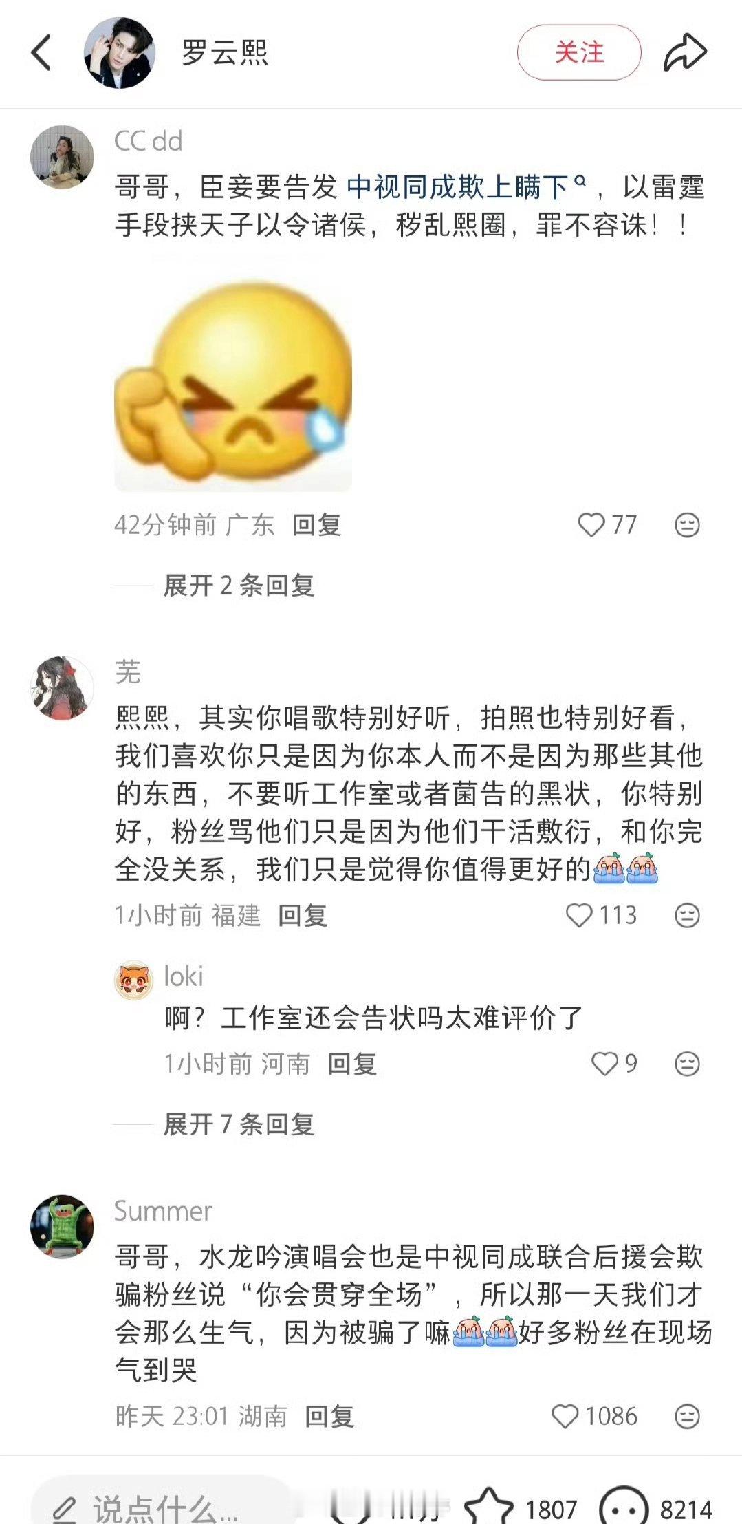 粉丝小红薯🍠评论要求罗云熙和公司解约