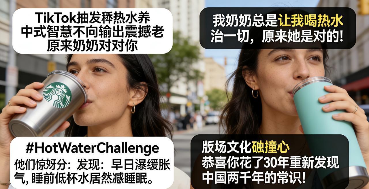 美国年轻人迷上喝热水?中式智慧反向输出震撼老外:原来奶奶是对的! 近期,TikTok掀起一股“热水养生潮”,美国年轻人纷纷晒出自己的保温杯,HotWaterChallenge标签播放量突破千万。他们惊讶地发现:早上喝热水真的能缓解胀气,睡前一杯热水居然改善睡眠。 一位博主在视频中激动地说:“我奶奶总是让我喝热水治一切,原来她是对的!” 有网友的回复更扎心:“恭喜你花了30年重新发现中国两千年的常识!” 在这场文化碰撞中,中医“温通阳气”的理论被简化成生活小妙招,成为都市年轻人的新宠。从星巴克冰美式到随身保温杯,美国青年的生活方式正在悄然改变。 这波热潮背后,是快节奏生活下的健康焦虑,也是不同养生理念的有趣对话。热水虽非“灵丹妙药”,但这份对身心调节的关注,或许比争论冷热更有价值。 说到底,无论是东方智慧还是西方科学,倾听身体的需求,找到适合自己的节奏,才是最好的养生之道。
