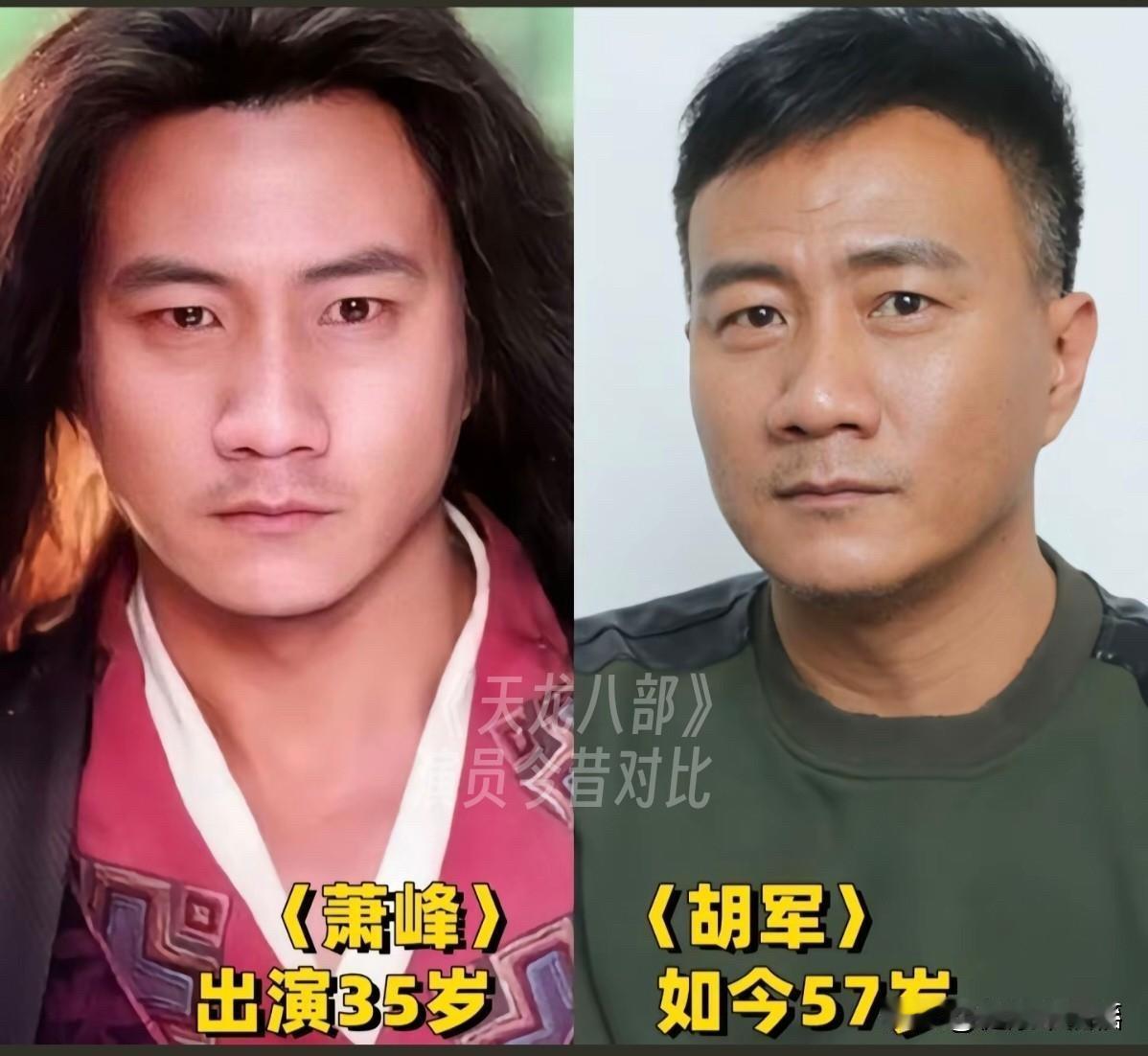 03版《天龙八部》主演今昔照,英雄美人皆老,江湖记忆不老 胡军老师,今年57了。当年他演乔峰(萧峰)的时候,35岁,正是男人最扛鼎的年纪。那身材,那气势,往那一站,就是顶天立地、豪气干云的大英雄。胡军老师把乔峰的侠义、悲情、担当演得入木三分,尤其是那眼神,既有豪杰的锐利,又有悲天悯人的柔软。他本身就是中央戏剧学院毕业的实力派,在这之前,《蓝宇》里的硬汉形象就已深入人心。之后更是戏路宽广,从《楚汉风云》的项羽到《十月围城》的阎孝国,个个都是硬骨头。 “不老男神”林志颖,如今也51岁了。当年演段誉的时候29岁,那叫一个面如冠玉、唇红齿白,把大理段氏王子的贵气、痴情、书卷气演活了,特别是那股子天真烂漫的劲儿,别人真学不来。林志颖是偶像出道,红了几十年,唱歌、赛车、演戏样样玩得转。除了段誉,他早年的《旋风小子》、《绝代双骄》小鱼儿也都是经典。 周晓文导演,今年69岁。他演的扫地僧,那可是《天龙》里武功的“天花板”,神仙般的人物。出场不多,但那种深不可测、慈悲渡世的气度,震撼全场。周晓文导演本身是著名的电影导演(《疯狂的代价》、《秦颂》),客串这个角色,简直是神来之笔。
