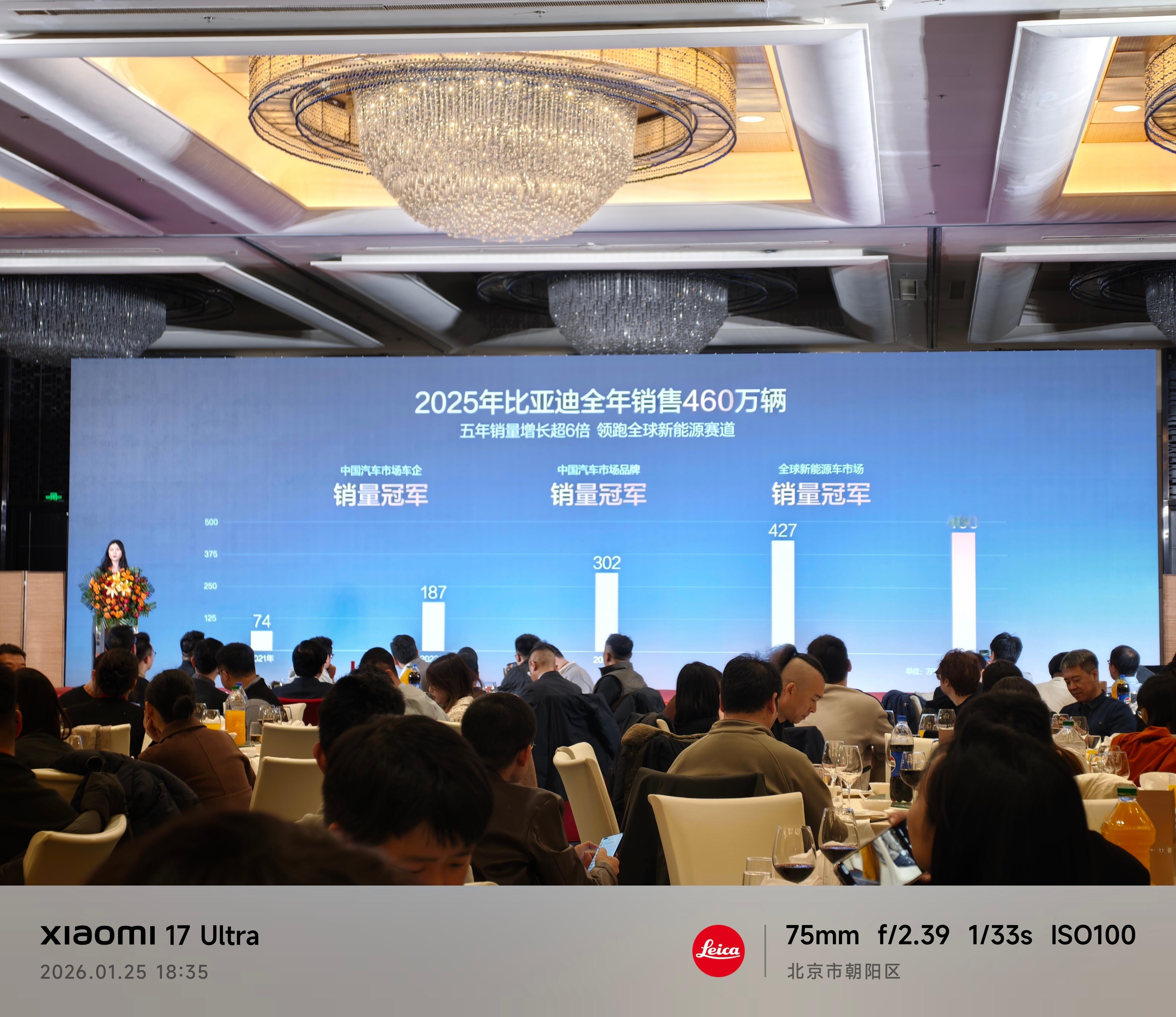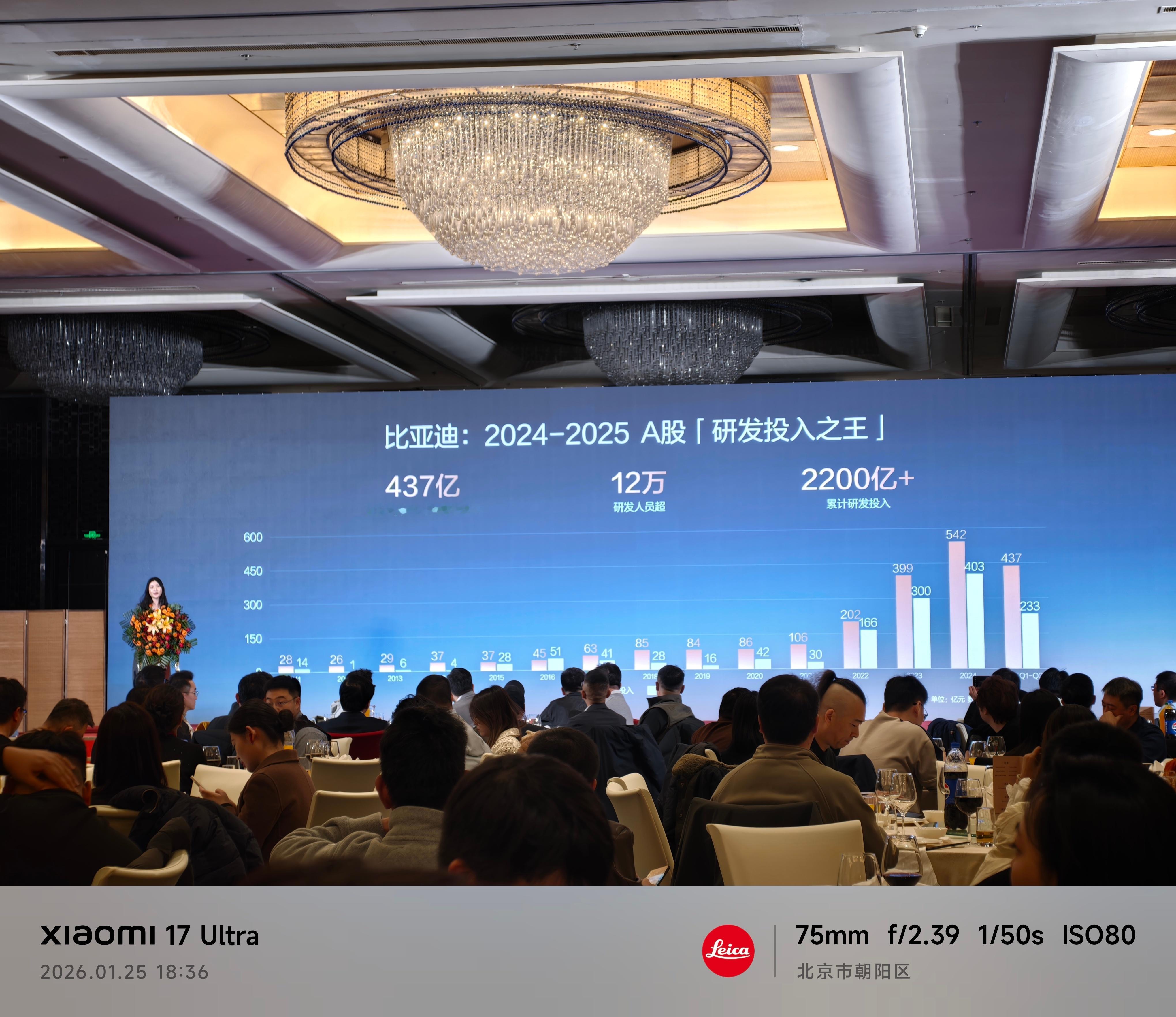 今天来北京参加比亚迪我迪朋友们晚宴,比亚迪2025年依然是全球新能源车销量冠军,2025年销售460万台,再创新高,研发投入437亿,研发人员12万,累计投入研发2200亿,技术鱼池是比亚迪的核心引擎。而且比亚迪海外的销量也越来越多,真正的全球车企。今晚也有抽奖,看看我能中个啥。抽奖这个事情我在行 北京·北京JW万豪酒店