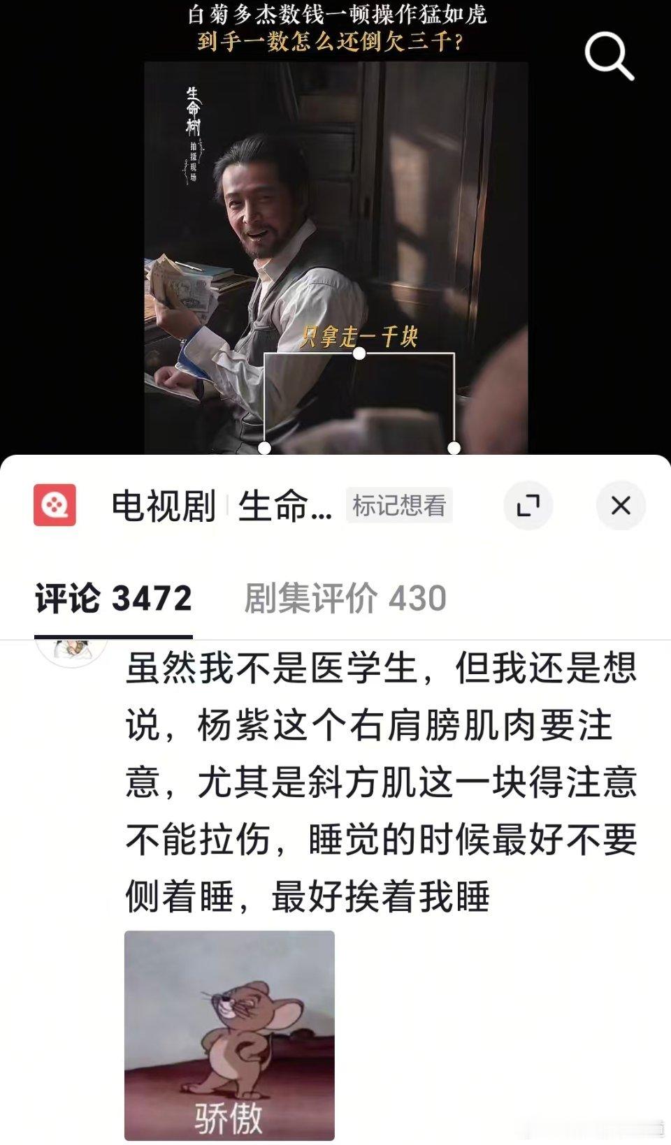 生命树杨紫数钱越数越多哈哈哈哈哈哈哈,这条视频的评论区也很好笑啊,网友说:“你可曾算明白过账”“从未”。还有人呼喊何惟芳带着她的玉算盘去给白菊算账。杨紫第三条,我很认真的看完了,直到我看到最后