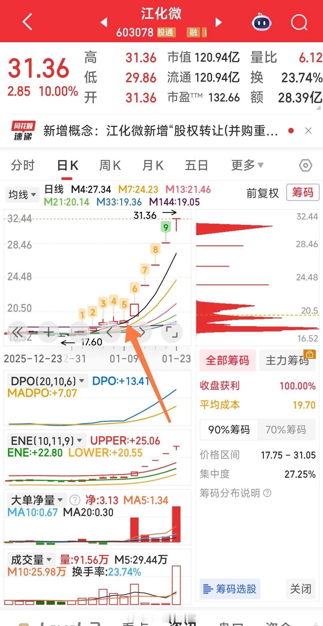 【一条死指标让你提高80%成功率】日K线M4均线站上就持或建仓,破日K线M4均线就出局或减仓,坚持这一条死指标让你提高80%成功率。你可验证一下你干过的所有票,也可去跟踪你将来想干的任何票。大家说说,是否如此。有感觉的留个“518”,看有多少人看明白了。附例:咱手中4牛的M4具体狙击点位,见箭头所指的突破M4均线之时。
