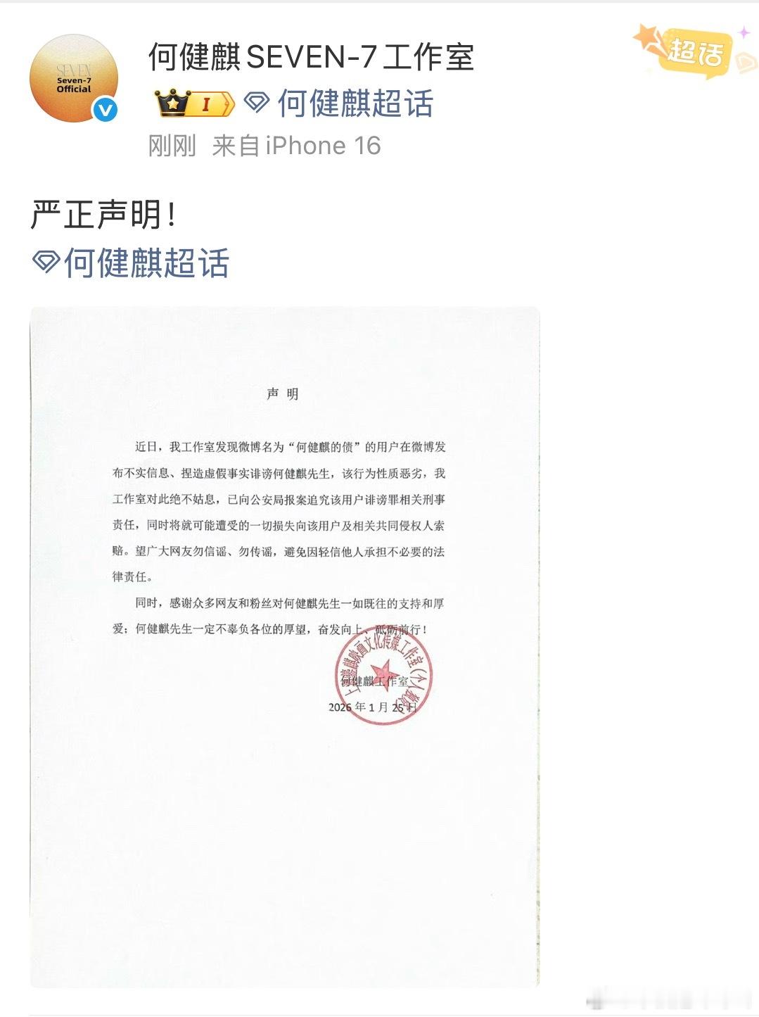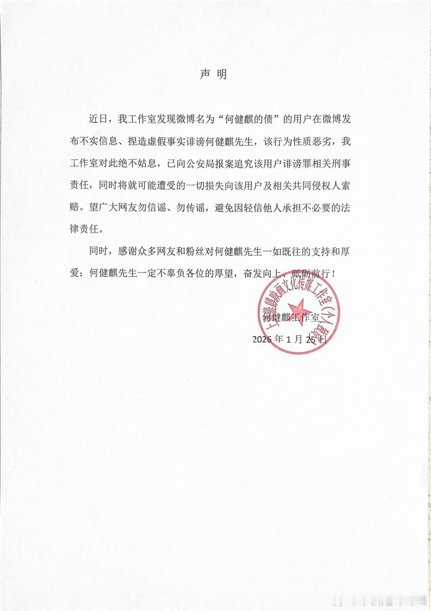 何健麒工作室发声明了前女友实名举报何健麒涉毒