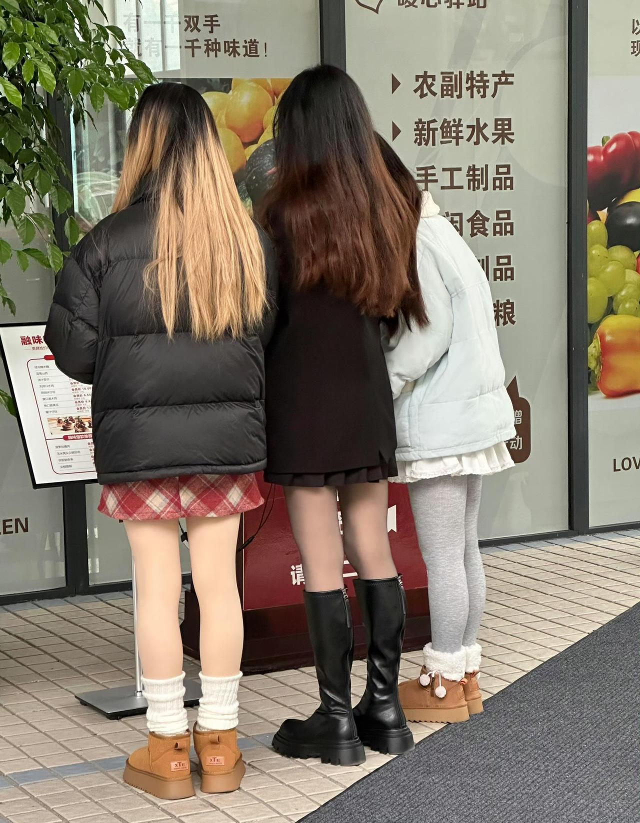 现在的女生冬天也要露腿,一年四季都能看到美腿,真好!冬季美女
