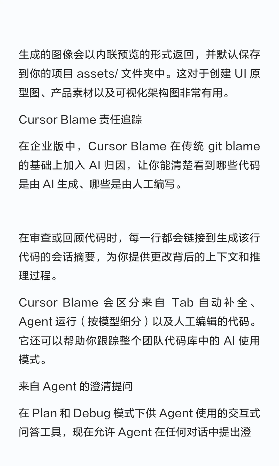 在企业版中,Cursor Blame 在传统 git blame 的基础上加入 AI 归因,让你能清楚看到哪些代码是由 AI 生成、哪些是由人工编写。
