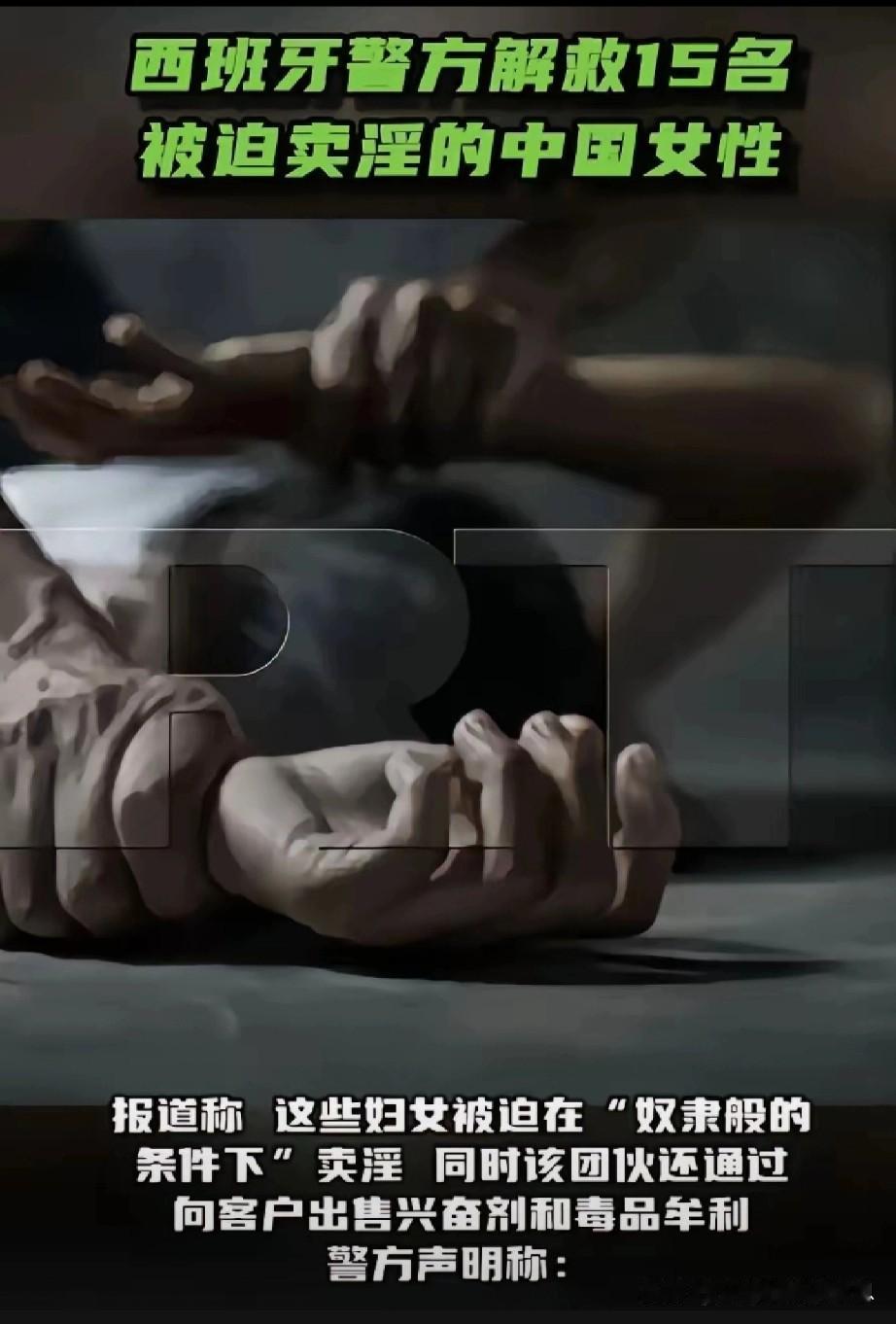 西班牙警方破获一个犯罪团伙,15名东大女性被迫卖淫。 她们生活在“奴隶般的条件下”,被迫“每周7天、每天24小时工作,没有行动自由”。团伙还贩卖兴奋剂和毒品。 部分女性通过社交媒体接到虚假工作邀请,承诺月薪约2000欧元。此次行动逮捕14人,其中1名是西班牙人,其余都是东大公民。