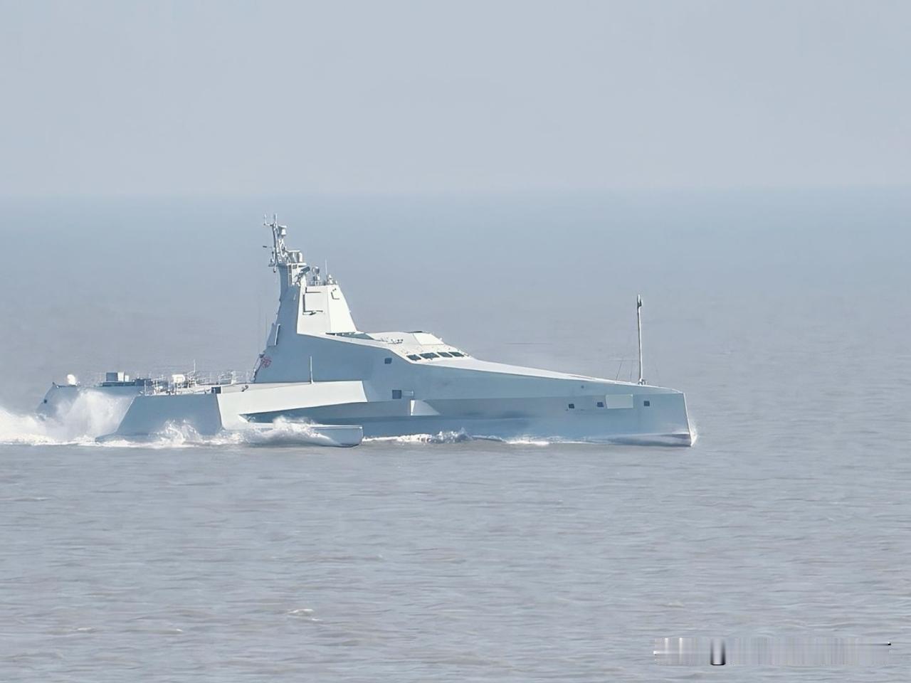 这个三体试验舰最近也不怎么露面了。由于采用了三体结构,其后甲板面积非常大,可以起降更大体积的直升机或无人机。而且,三体结构也使其适航性非常好,可以在高海况条件下航行。 不管是是放大作为下一代水面舰艇,还是直接用作无人舰艇+无人机,其应用前景都非常好。