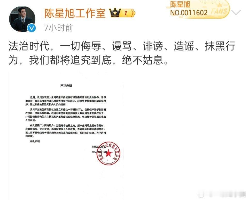 陈星旭工作室严正声明陈星旭 告黑!!太支持了!!!一切侮辱、谩骂、诽谤、造谣、抹