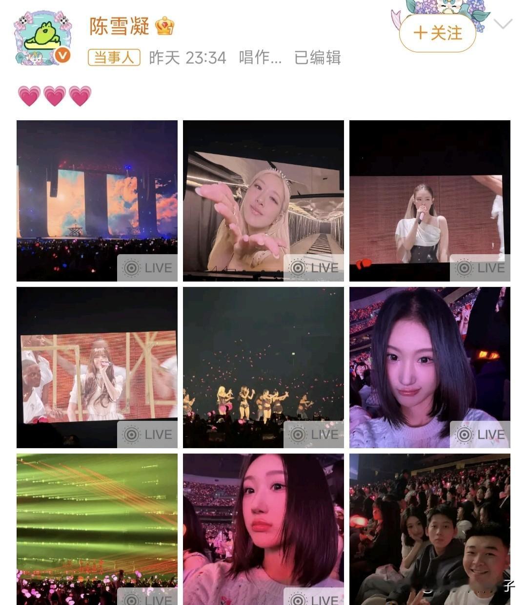 陈雪凝真的大心脏,老公被曝出轨,还在开心晒合照! 1月26日,深夜,歌手陈雪凝在社交平台更新动态,没有任何文字,只是配了三个爱心的表情,同时晒出一组照片。 照片中,陈雪凝对着镜头嘟嘴卖萌,还分享一张与老公的合照,单手托腮,妆容十分漂亮,依偎在李瑞滨的身旁,一副幸福小女人的模样。 难怪陈雪凝如此开心,老公陪着一起观看blackpink演唱会,好暖心。 此前,李瑞滨被曝出轨,通过时间线,被扒出疑似与完颜嘉怡同游,不过,女方发文否认了。 粉丝都在替陈雪凝担心,毕竟刚结婚还没几天,就遇到糟心的事,甚至一些网友留言冷嘲热讽,各种热议。 不得不说,陈雪凝真的大心脏,貌似一点没有受到风波的影响,可见对老公十分信任,彼此深爱。 对于出轨风波,虽然两人没有正面回应,却都晒出合照,大方撒糖,用巧妙的方式回击不实传闻,守护这份爱情。 说实话,陈雪凝和老公真的挺般配,新婚不久,希望能够永远幸福。 当然,爱如饮水,冷暖自知,作为旁观者,也只能安静的吃瓜。 换个角度,两人从恋爱到结婚,堪称闪电式的进展,这就是一见钟情吧,