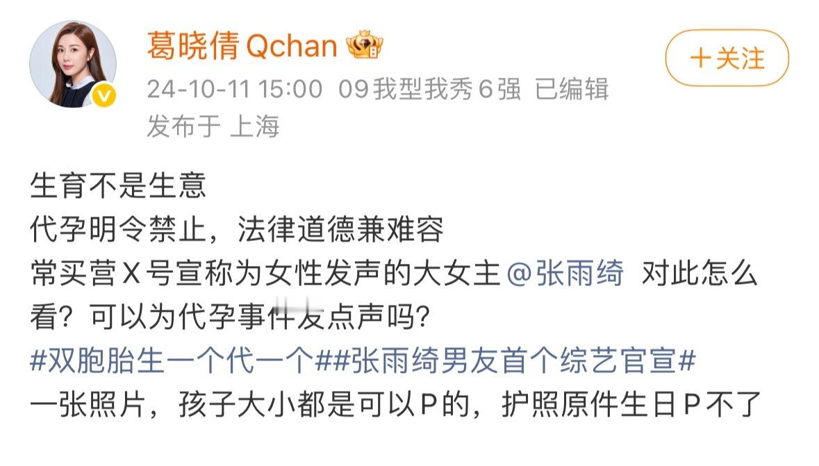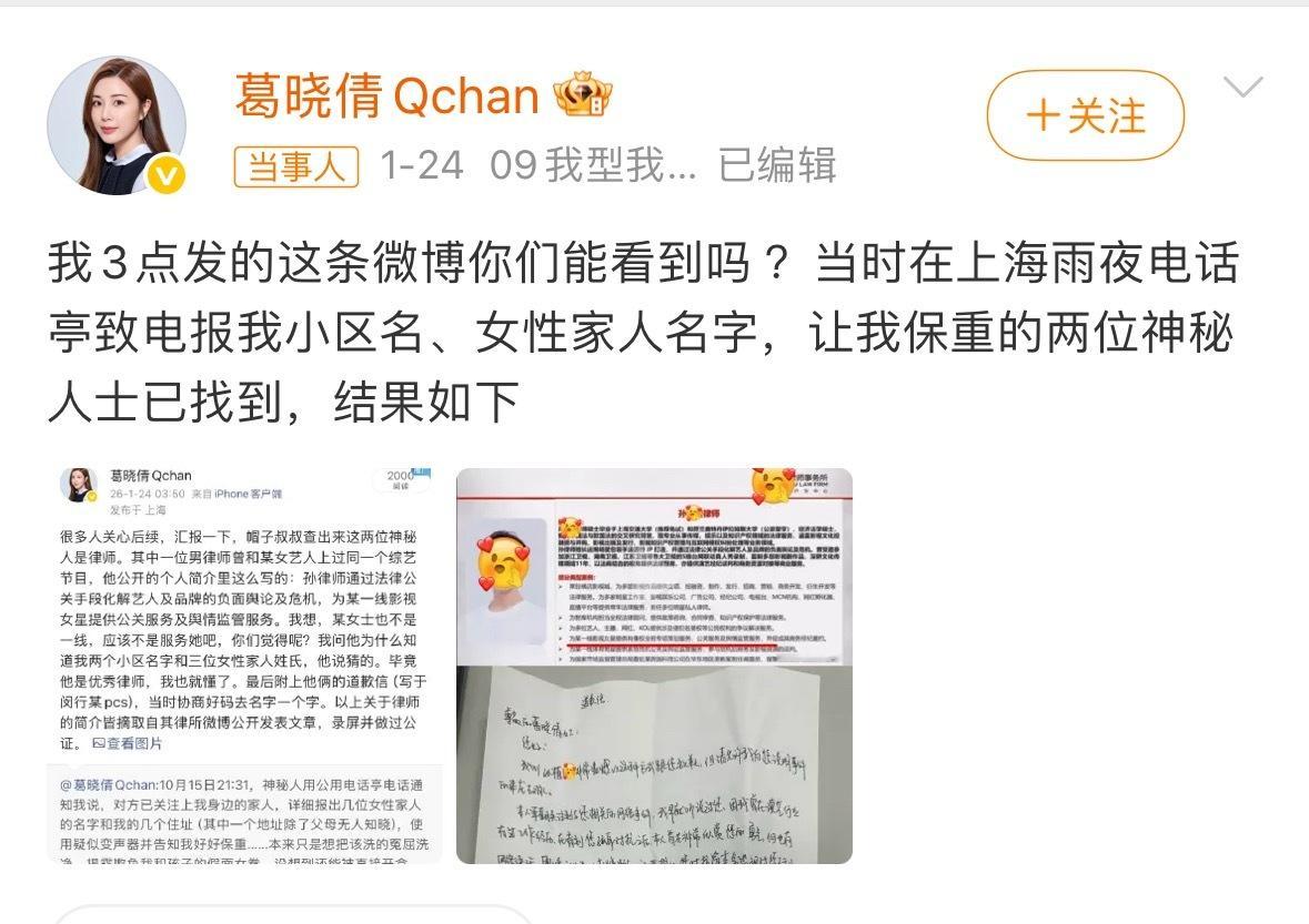 葛晓倩再爆料张雨绮:说当时雨夜致电她的是俩律师,并且手写了道歉信。辽宁春晚回应张雨绮争议:不会出现。说到代孕,爽子是因为这事吧。没想到大女主居然还好好的