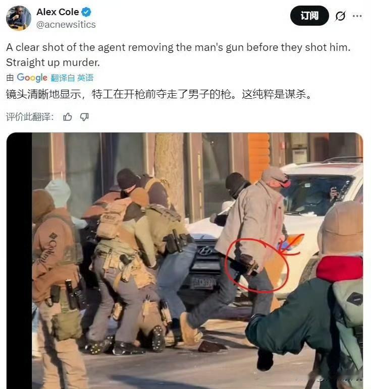 被枪杀的是土生土长的美国白人,和ICE(移民与海关执法局)没有任何瓜葛,仅仅就是因为拍摄其执法过程就被警察围攻,因随身携带了合法的手枪,在被抢夺走武器后,被乱枪打死。美国政府赋予公民拥有枪支的权利,但这项权利同时又包含着,你随时可能被警察打死。
