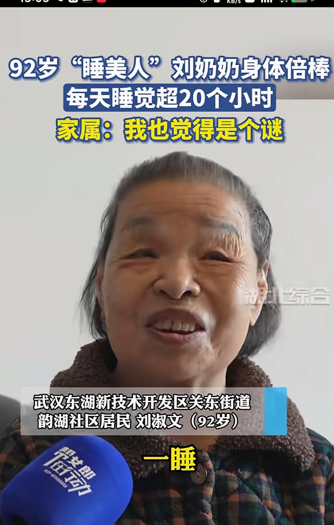 92岁“睡美人”每天睡觉超20小 时 【寿星来了】92岁“睡美人”刘奶奶, 每天睡觉超20个小时 她的日常几乎可以用“梦乡”来形容:每天睡觉超过20个小时,几乎占据了她全部的生活时间。有人会觉得不可思议,甚至有人会担心:“难道她身体出了什么问题?”但当我们走近这位白发苍苍的老人,却发现了一段令人动容的生命故事,也许会让你重新审视“长寿”的真谛。 刘奶奶的生活似乎与常人不同,但她的笑容却格外温暖。她说:“我每天都在睡觉,是因为我喜欢梦里的世界。”这句话简单却深刻。也许,她的“睡眠”不仅仅是休息,更是一种对生活的热爱和对过去岁月的珍藏。她的家人告诉我们,刘奶奶年轻时曾经历过战乱、贫困,但她始终保持乐观的心态,用微笑面对一切。或许,正是这份乐观,让她的身体在岁月的洗礼中变得不同寻常。 从医学角度看,长时间睡眠确实可能与身体某些状况有关,比如慢性疾病或身体衰弱,但刘奶奶的健康状况却出乎意料的良好。她血压正常,精神也很好,偶尔还会讲讲年轻时的趣事。她的家人坦言:“我们都觉得,奶奶的睡眠可能是她用来与过去对话、与自己心灵交流的方式。”这让我们不得不思考:或许,睡眠不仅仅是身体的需要,更是心灵的港湾。 这位“睡美人”的故事,像极了一面镜子,折射出我们现代社会的焦虑与浮躁。每天奔波、追逐,似乎都在告诉我们:快点、更多、更强才是生活的唯一标准。而刘奶奶用她的“长眠”告诉我们,也许,放慢脚步,静静地睡一觉,才能真正听到内心的声音,感受到生命的宽度和深度。 或许,我们都应该学学刘奶奶,学会在繁忙中找到属于自己的节奏。毕竟,生命的意义,不在于你睡得多长,而在于你是否在每一个当下都活得充实、安然。她的故事,激励我们用心去感受生活的每一份温暖,每一次呼吸的珍贵。你是否也在某个角落,渴望那份宁静与自在?让我们一同反思:也许,睡眠,正是通往心灵深处的那扇门。老年人睡眠