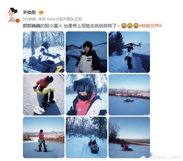 关晓彤颤颤巍巍的胆小星人关晓彤去挑战自我了 颤颤巍巍的胆小星人怕摔又想尝试,关晓彤带着屁垫去滑雪,用小装备给自己底气,勇敢开启滑雪挑战。