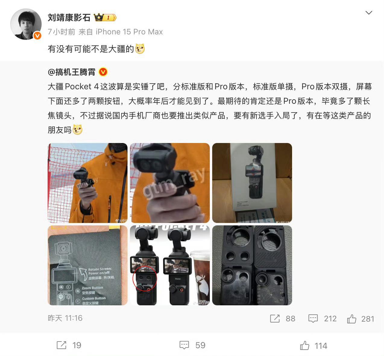 双摄云台相机曝光网上看到双摄云台相机的爆料,挺好奇的。双摄如果能流畅变焦,确实比单摄方便不少,拍远景和特写不用来回切了。不过要是为了这个功能冲首发,我可能得先看看实际画质和价格——新鲜技术尝鲜成本太高,不如等一波真实测评再说影石CEO回应双摄新品可能不是大疆