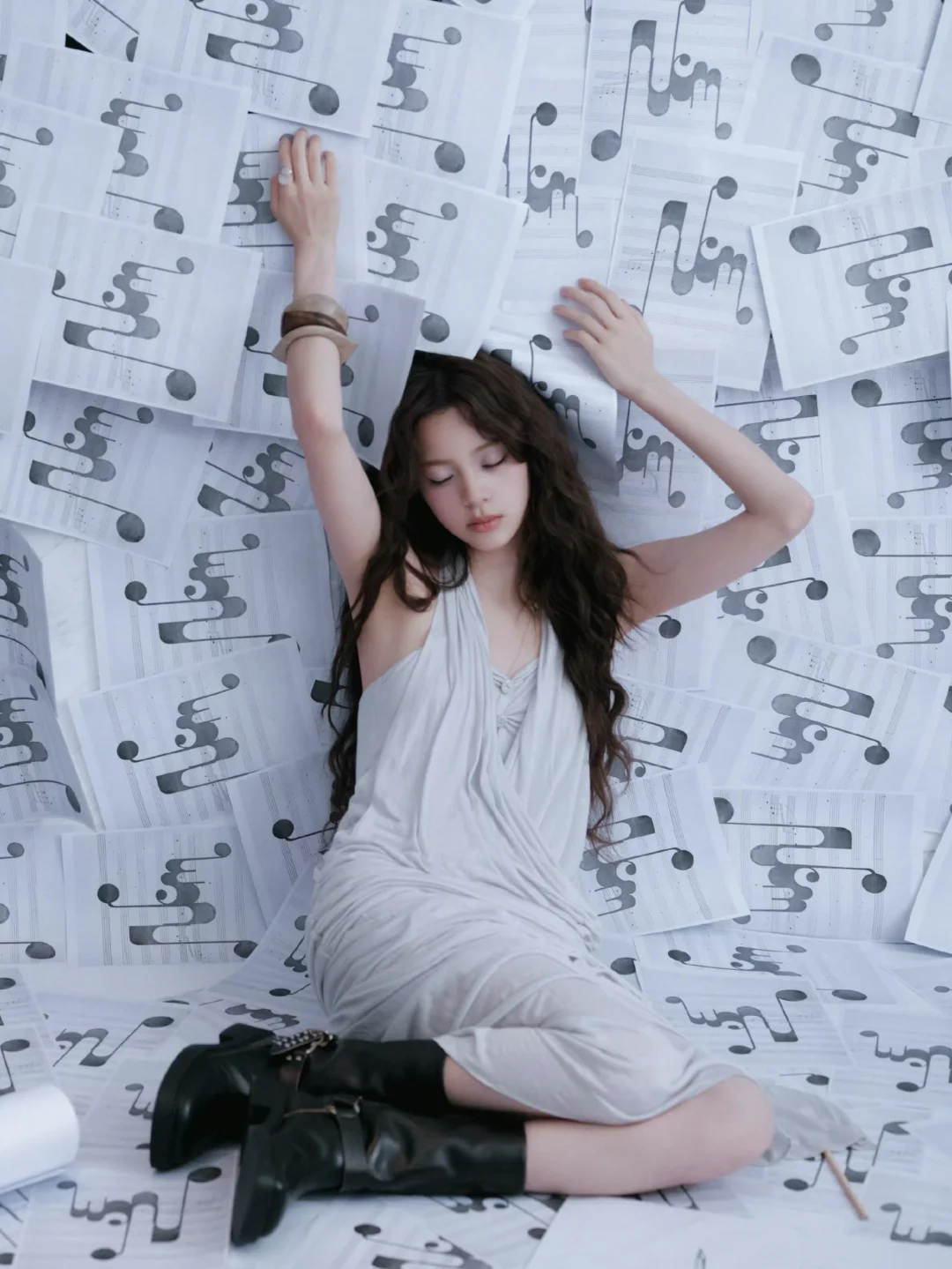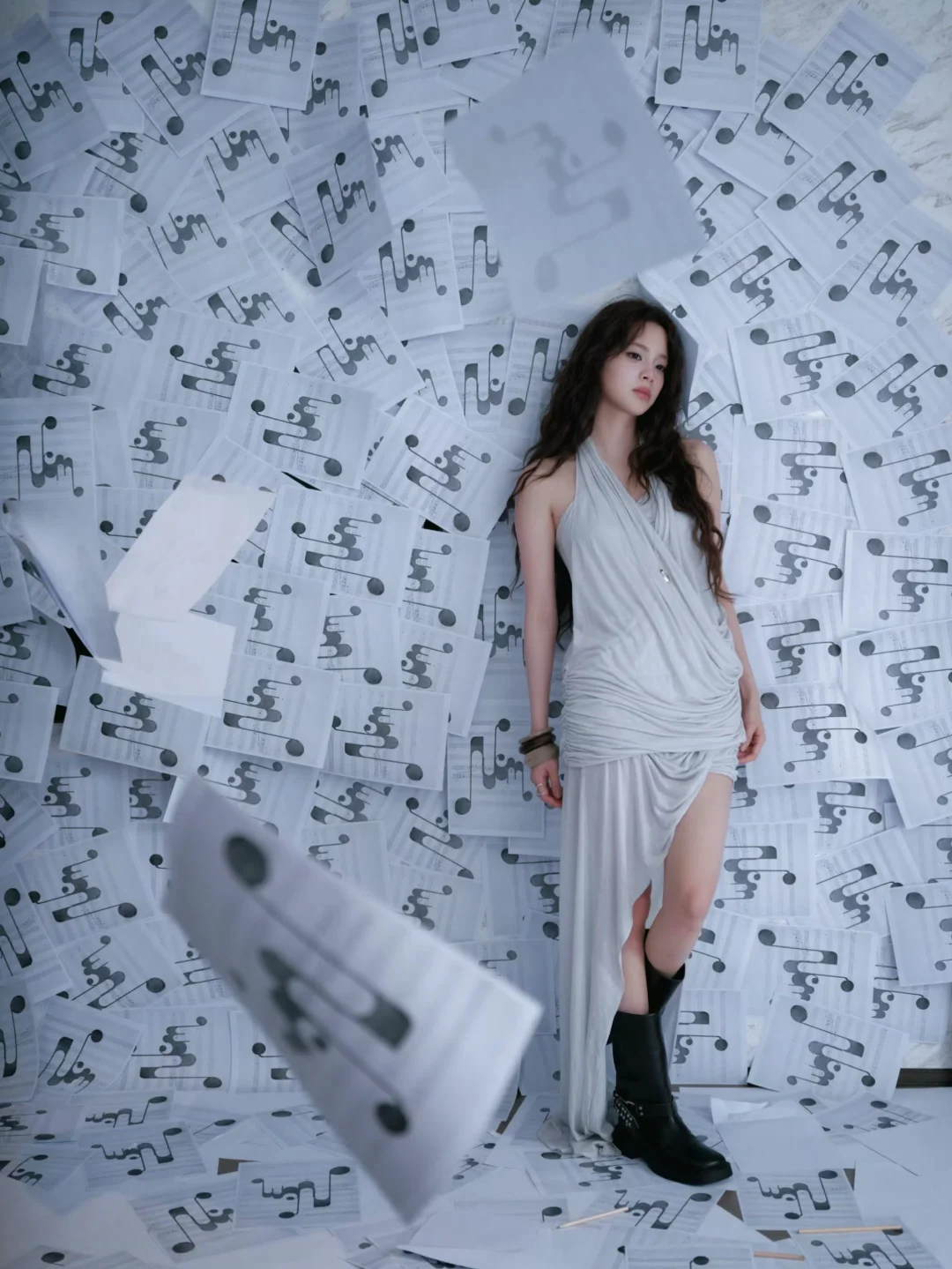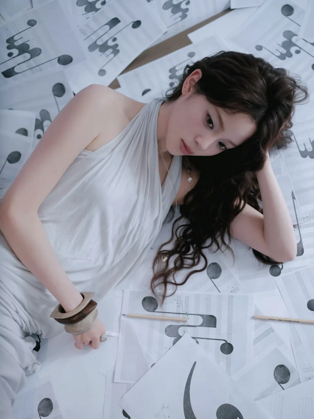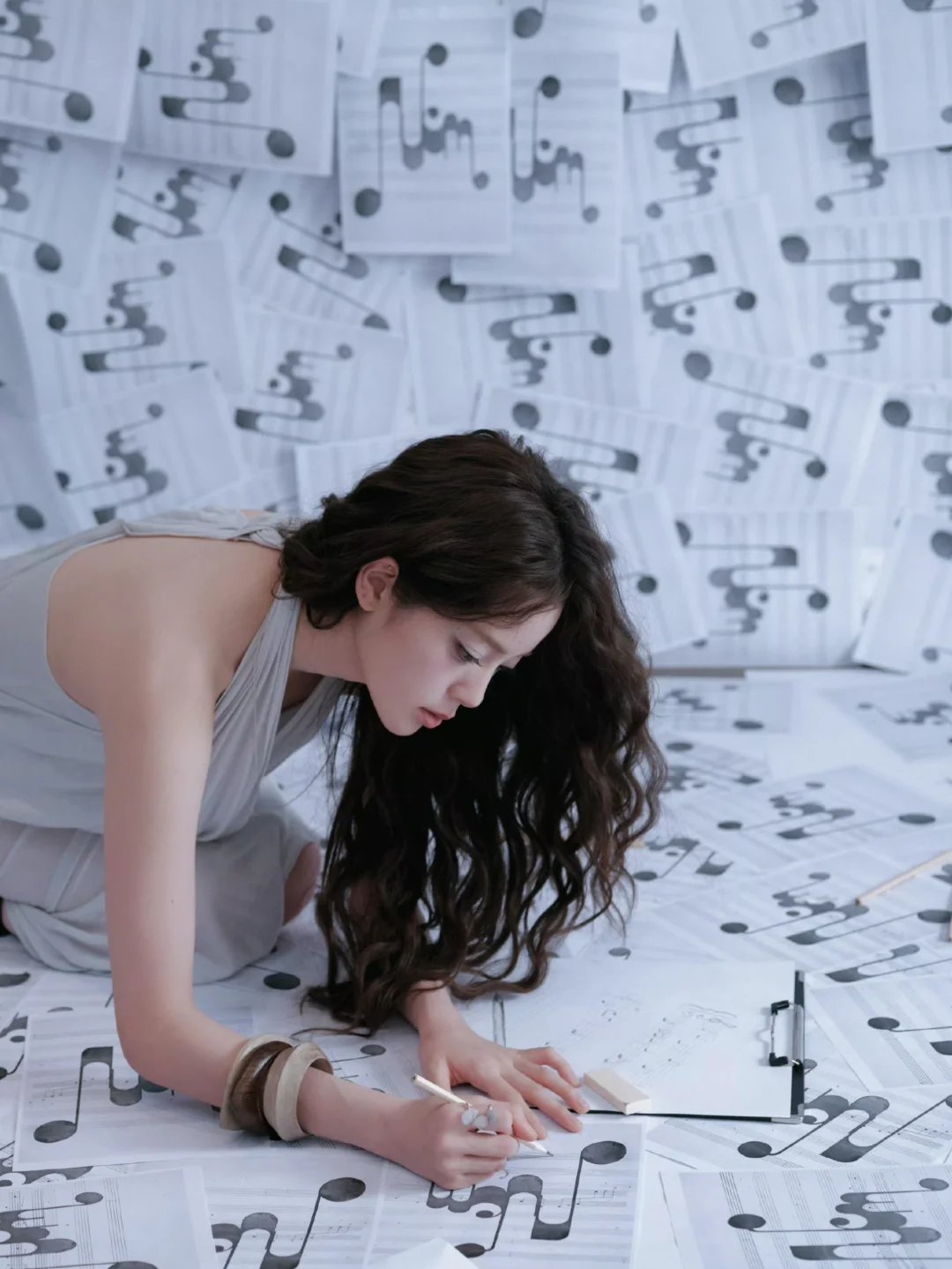 📷音乐主题写真拍照参考 这组写真很适合娜比。满墙满地的音符手稿,正对应她音乐女神的人设。而且这些的音符似是而非,显得很有艺术感。 图片来源:欧阳娜娜工作室