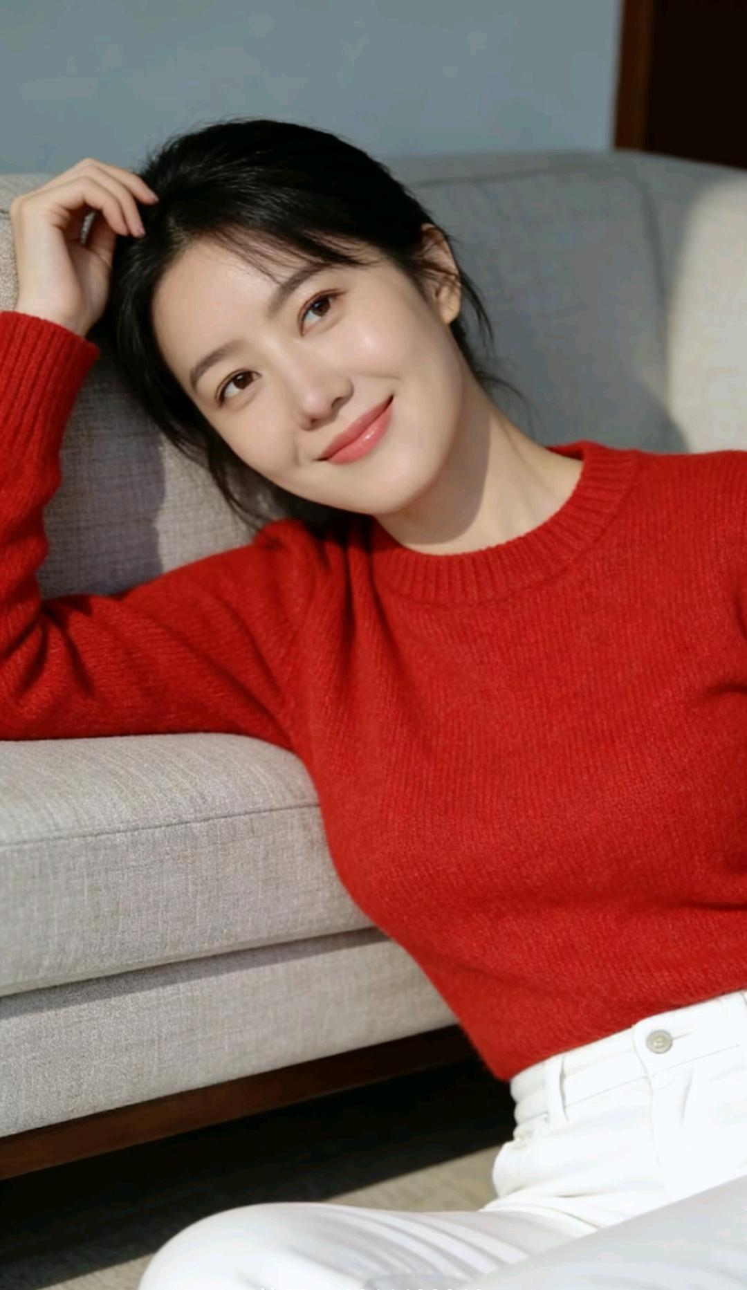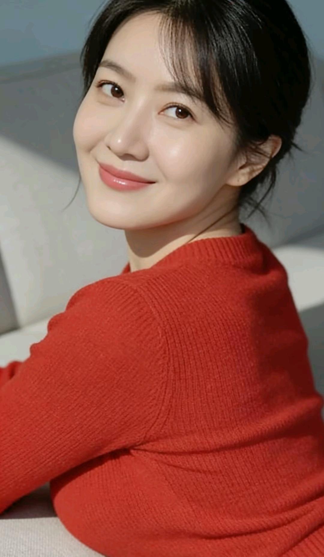 温暖冬日,红衣少女,微笑如阳光般明媚。🌞💕