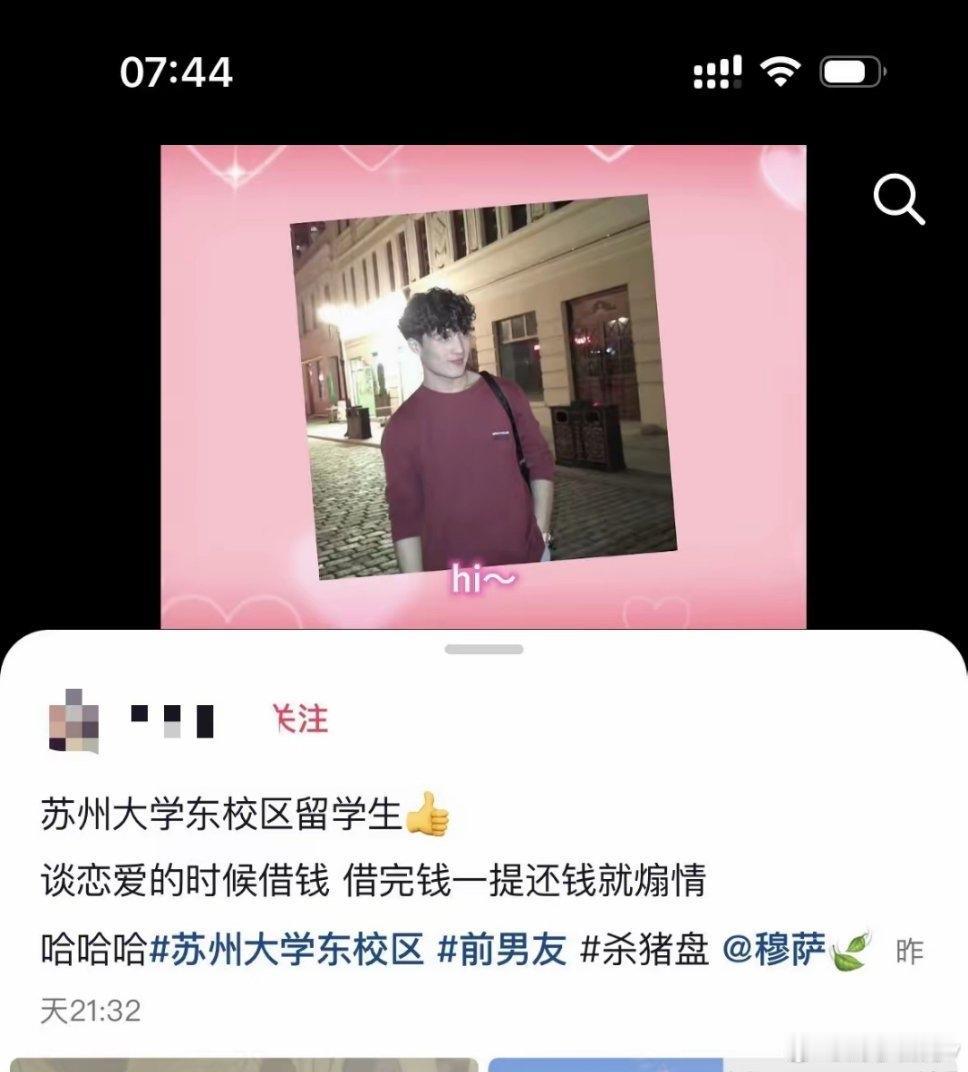 苏州某大学女生恋上了土耳其留学生,出钱出力陪玩,借大钱给男朋友救急人却玩消失。看视频平台的介绍,这个男的叫穆萨,看起来挺帅气的,这可能是吸引女孩的原因。但是他显然是把女孩当提款机了,压根没有认真对待这份感情。所以女孩们,别被被他们的外表和甜言蜜语所迷惑,很大可能人财两空。留学生婚恋 跟老外恋爱
