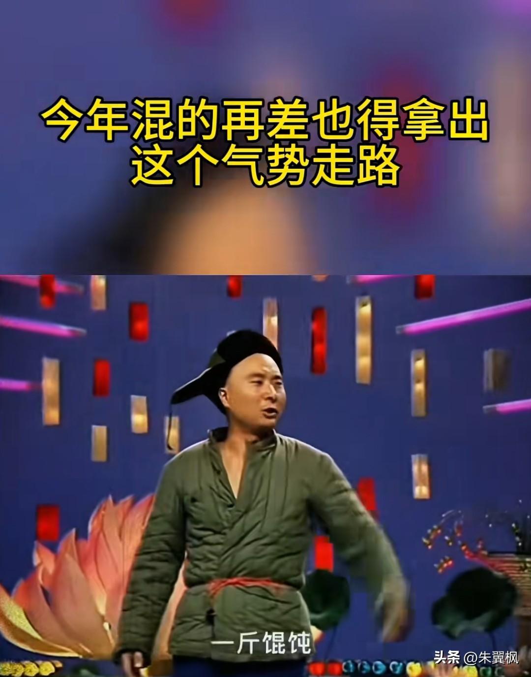 ″今年混得再差,也得拿出这个气势走路",陈佩斯这个小品又被网友翻出来火了。看看陈小二进馆子吃馄饨的气场多么自信和潇洒,仰首挺胸走出六亲不认的步代。 尽管,他一身乡下农老二身份的打扮,搓馆子见到朱时茂这样的精致城里有钱人也毫不胆怯和自卑。 ″师傅,来碗馄饨”,陈小二冲店家吆喝一声,随即找座位坐了下来。后绪发生的故事情节,想必全国人民都知道的,全场虽没一句对白,但演员的肢体语言和情绪起伏却表达得淋漓尽致,真是无声胜有声! 以当下人们的生存压力,各种焦虑的情况心境,用这个小品中陈佩斯走路的姿势气场来自嘲,非常有正能量。任何时候面对困难,都要有抬头挺胸的勇气和自信,哪怕是装,你都尽管装好了。 从心理角度讲,也可说是一种心理暗示,有蝴蝶效应的作用。犹如演员演戏,进入角色就难以分辨真假,人就会自然形成这种气场,内心自然也就有了力量,就有了面对困难的勇气和不服软的精神。 从古至今,中国人不畏艰难险阻,自力更生。面对困境,一直都是自救,从没真正依赖谁而生存。只要能够活下来,什么环境和办法都能支撑,去设法去搞,没有什么规则可言,这也是外人眼中的华人印象。 难得的是,面对任何困境,国人总有一种乐观心肠,这方面最具代表的人物要数苏东坡。 他的一首《定风波》让人百读不厌: 莫听穿林打叶声,何妨吟啸且徐行。竹杖芒鞋轻胜马,谁怕?一蓑烟雨任平生。