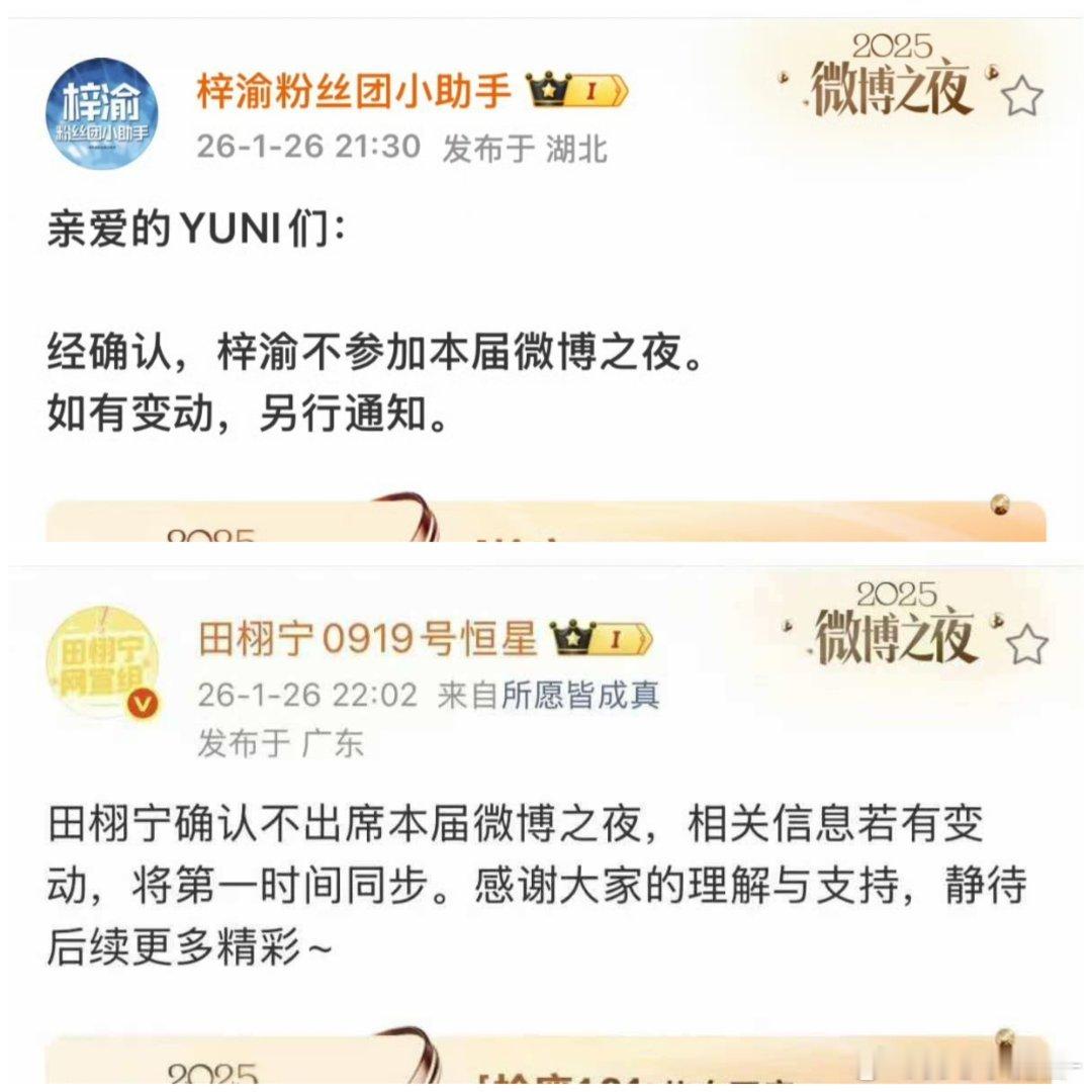 梓渝 田栩宁 不参加微博之夜,意料之中,就不应该去投票…
