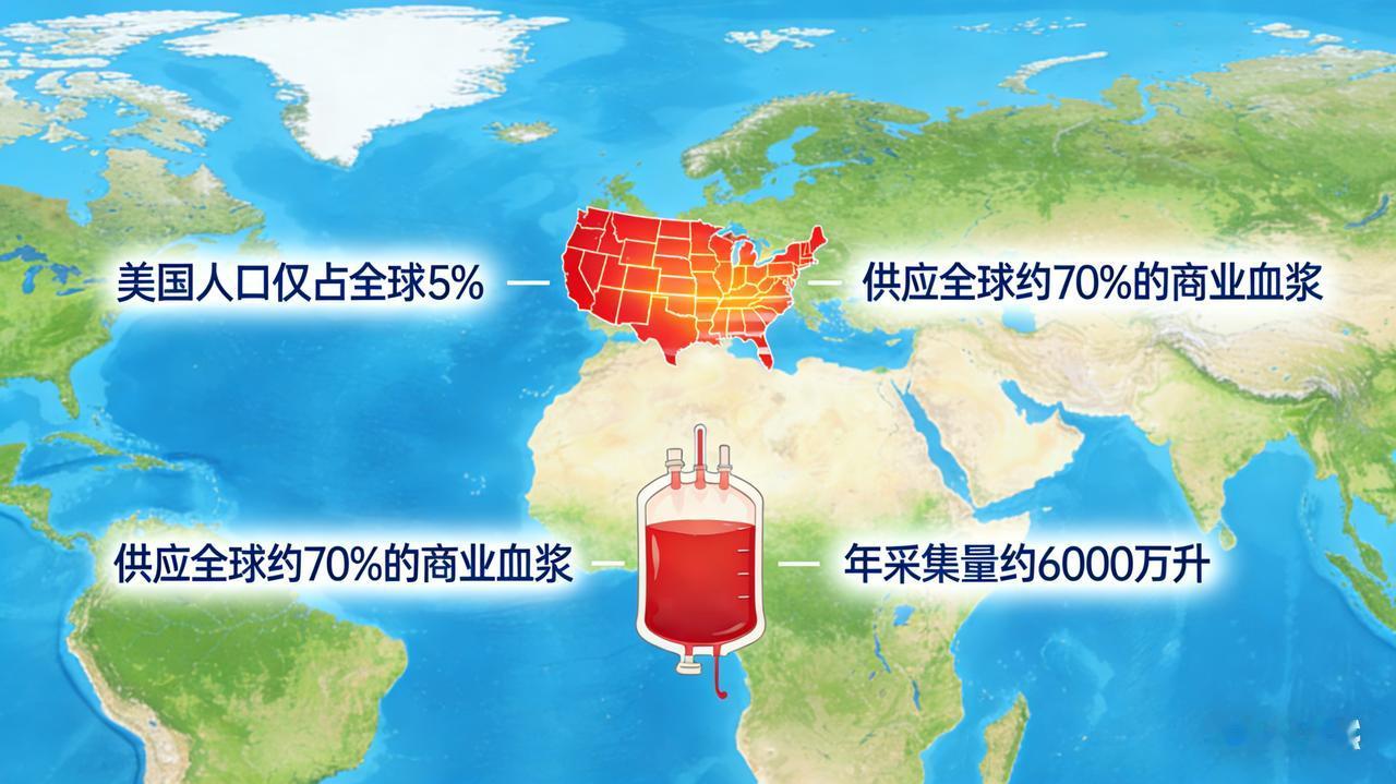 美国人口不足全球5%却主导全球70% 血浆供应,年采集量约6000万升,大部分加工后出口。依赖有偿采浆模式。