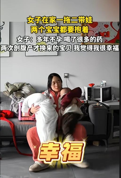 人类的幸福其实并不相通的。 一女子在家一拖二带娃,两个宝宝都要抱着,我看着都累,她却表示很幸福。她的幸福,我感受不到。 一个刚会走,一个襁褓中,两个还都是剖腹产。且不说连续剖腹产对自身身体损害,就带娃的累都足以压垮人的腰,这勇气实属让人敬佩! 即使再渴望要一个自己的孩子,但是没必要这么频繁吧,相当于刚出月子,她就怀二胎了。这简直是拿自己的生命去生孩子,太狠了她! 如果有人帮衬还可以理解,但是两个都要抱抱的年纪,却只有女子一人带着。蓬头垢面的,两只手都抱着娃,总有顾不上一个娃的时候。 这样的幸福,只有她自己能体会吧!如人饮水,冷暖自知,希望她能幸福美满!