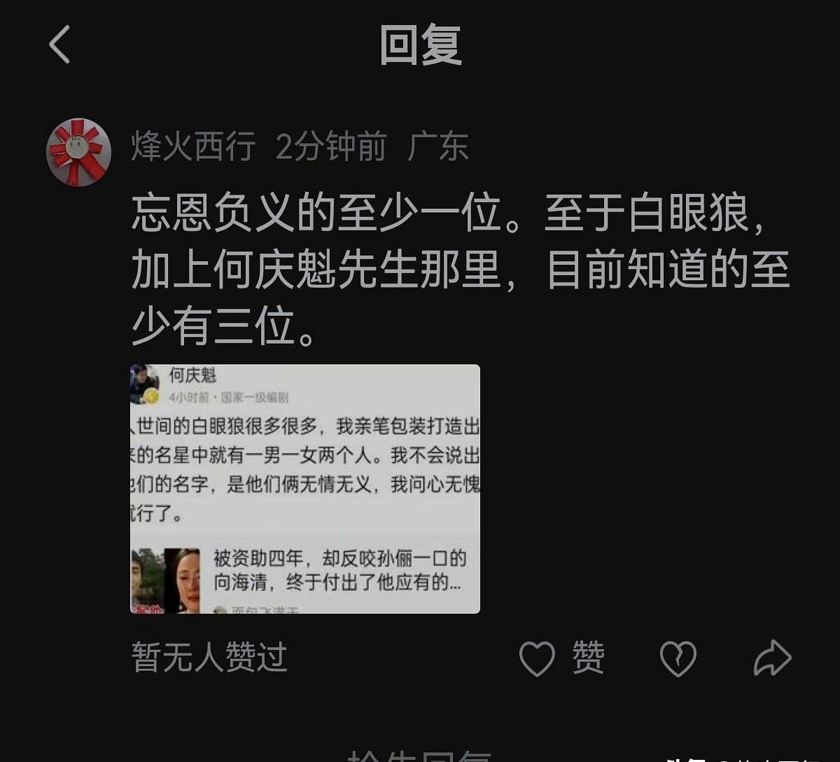 何庆魁怒揭家丑:两个白眼狼,一男一女! 何庆魁的儿子何树成,直播间直接开撕。矛头对准闫学晶,说我爸当年给你加戏、送你上春晚,现在人红了,电话都不接。 老爷子自己也放话,亲手捧出俩明星,都成了白眼狼。老伴高秀敏走了,自己病了,想找人说句话都费劲。 那个男的呢?很多人猜是范伟。铁三角散伙,理由是“孩子要上学”,换做是你,这口气咽得下去吗? 这风气不止一家。刀郎开演唱会,徒弟云朵没去,也被骂忘恩负义。你说,这到底是人走茶凉,还是另有隐情? 给你翅膀的不是别人,忘了天空的却是自己。