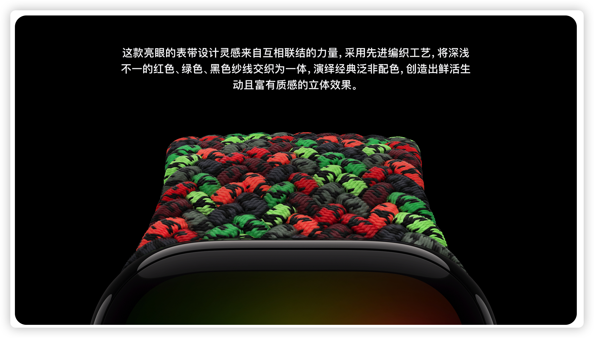 苹果刚刚上架了致敬黑人月的新款黑人团结单圈编织表带,售价 779 元。由非裔人士设计,意在致敬非裔族群的历史文化与全球非裔同胞,设计承载着追求世界公平的共同信念。