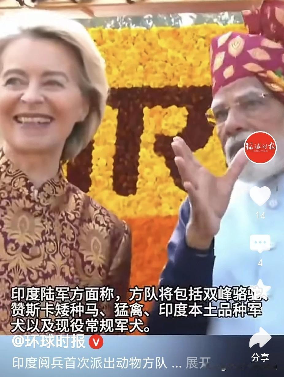 当世界、都在为印度尼帕病毒倒吸一口气的时候,印度陆军、用只有印度原住民能读得懂的方式,上演了一场空前绝后的动物运动会。说动物运动会,也许不是很准确,但实在想不出什么更好的语言,来组织印度陆军这种逆天的行为。一边是印度、西孟加拉邦的疫情如火,一边是新德里责任大道(Kartavya Path)的烈火燃情,如果不是一种分裂的头脑加持,很难体会到印度叠罗汉之后的动物变种。🐪 双峰骆驼(2头),🐎 赞斯卡矮种马(4匹),🦅 猛禽(4只,黑鸢为主),🐶 军犬(16只),合印度军士若干,妥妥的动物界天花板新德里论剑。西孟加拉邦、已有20名密接者被严格隔离,并对医院的另外180人开展了大规模检测,新德里1月26日、举行印度2026年“共和国日”阅兵式,并首次派出专门的“动物方队”参加。人畜共患的病毒,不管“动物方队”里有没有病毒的宿主,这个时候人与兽混合交叉阅兵是否合适宜?我的柔情你永远不懂,看到莫迪总理与欧盟委员会主席冯德莱恩同框和谐的笑容,原本对病毒提着的一颗心慢慢回落腔体,天塌大家死、印度总理、欧委会主席都不畏死,吾之惧又从何来?欧洲理事会主席科斯塔、也一起参加了大阅兵,看得出来印度是想和欧盟搞关系,东边日出西边雨,无缘无故的印度出了阿美莉卡疫情,饱受摧残的欧盟、印度不得不抱团取暖对抗川普,美国的打压不分敌我,川普总统的打劫专挑枕边人下手,尼帕病毒、动物方队、莫迪总理、欧委会主席的四重奏,是否抵得住招牌武学《碧海潮生曲》不好说,黄老邪的税后罚款是一定少不了,万事有轮回、嘚瑟也总要付出代价,川普总统的劲道不只是体现在委内瑞拉、伊朗等敌国身上,对待身边的侍从、打手更是从不留情,欧盟委员会、印度婆罗门、好运!