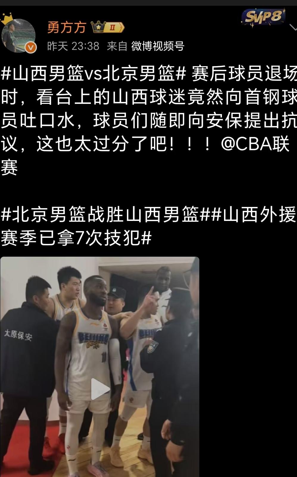 山西球迷出现恶心一幕,又要坐等罚款了!不得不说山西球迷是输不起,大丢人格,太没素质,太令人恶心了。昨晚输给北京队后,山西球迷竟然向北京队的陈盈俊,杰曼,雷蒙等队员吐口水,而北京队员也向保安提出了抗议。山西球迷这样的行为,真是大恶心和丢人了。这下侯向锋等山西媒体人又是洗不了了,就坐等处罚吧,CBA公司大概率又给他们开出罚单。 山西球迷历来都是输不起,只能赢不能输,曾多次在主场围堵客队大巴,向客队球员投掷水瓶,遭到处罚。昨晚输球后又重演丑陋和恶心一幕,真是输球又输人,是没有教养的球迷。希望CBA公司严惩这样的恶劣球迷,还赛场于干净环境。你对山西球迷的恶心做法,有何评论?